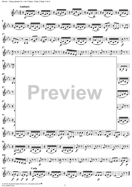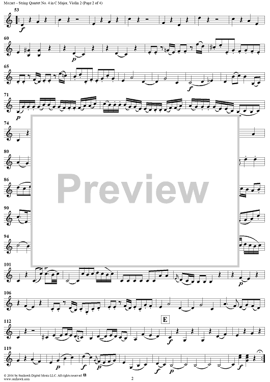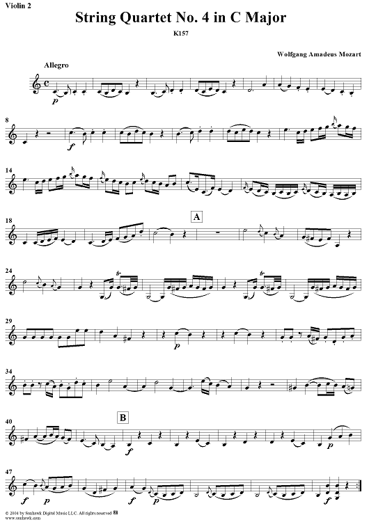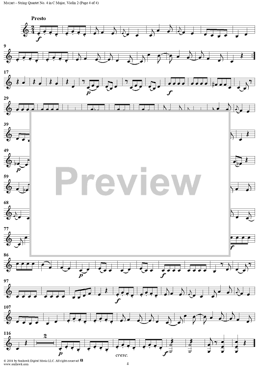 Digital Sheet Music for String Quartet No. 4 in C Major, K157 - Violin 2 by Wolfgang Amadeus Mozart scored for String Quartet; id:304090
