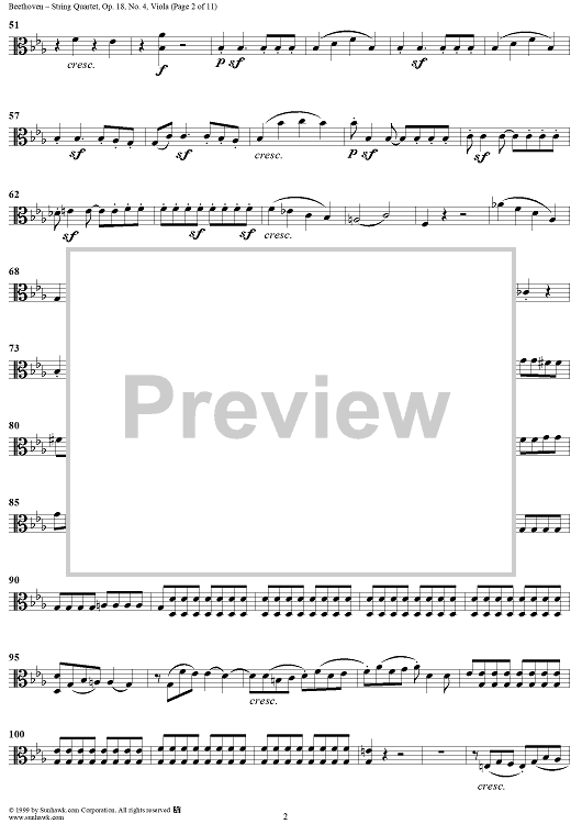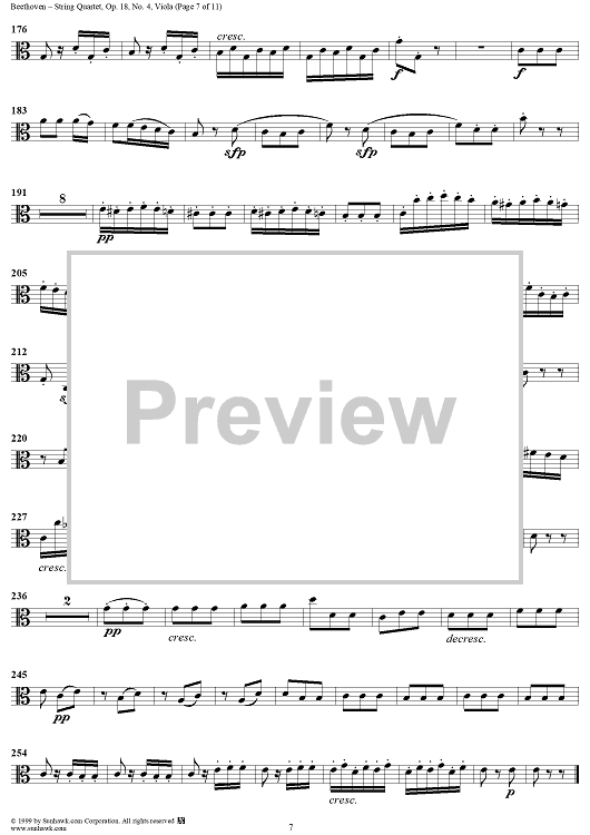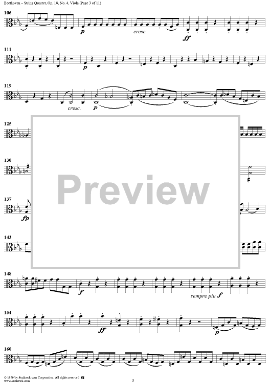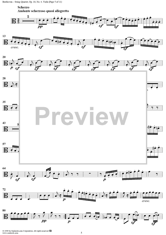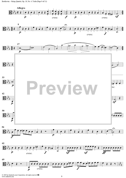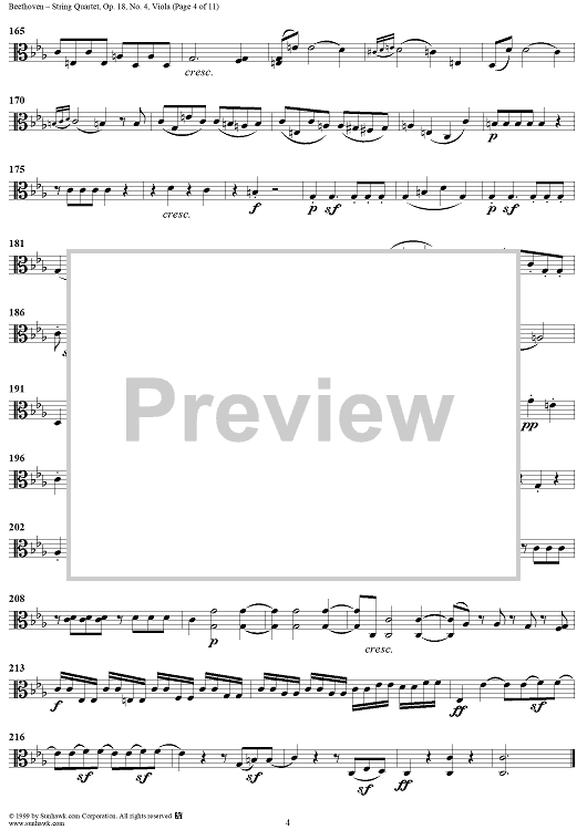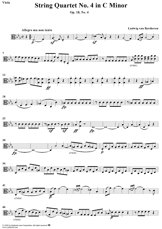 Digital Sheet Music for String Quartet No. 4 in C Minor, Op. 18, No. 4 - Viola by Ludwig van Beethoven scored for String Quartet; id:118467