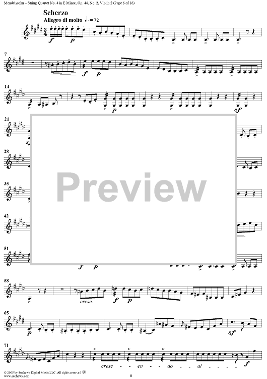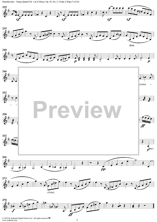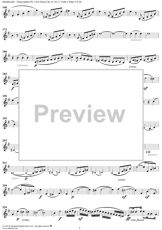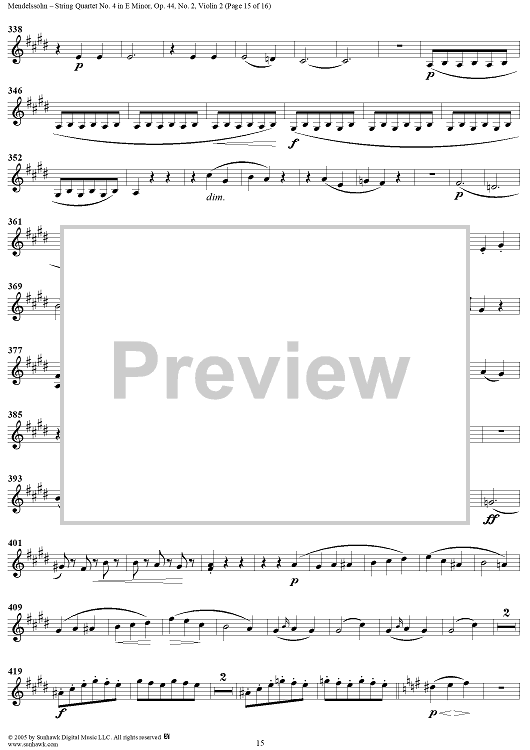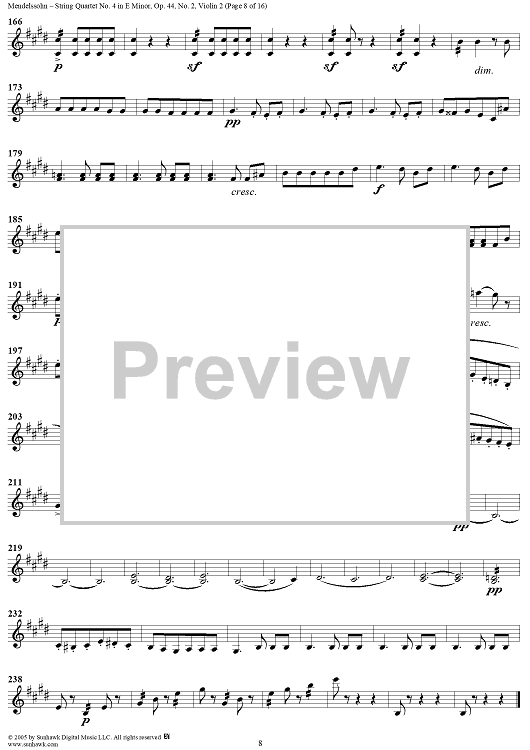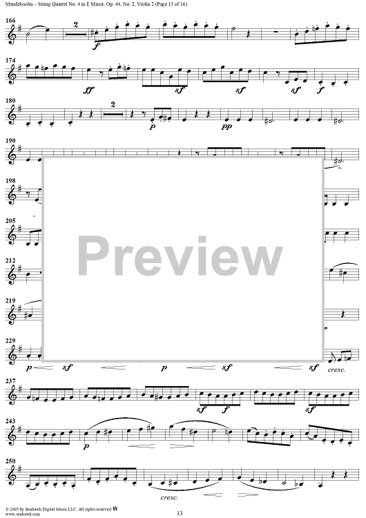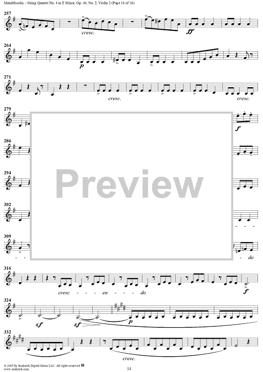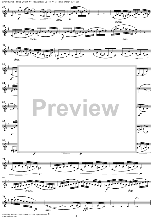 Digital Sheet Music for String Quartet No. 4 in E Minor, Op. 44, No. 2 - Violin 2 by Felix Mendelssohn scored for String Quartet; id:309531
