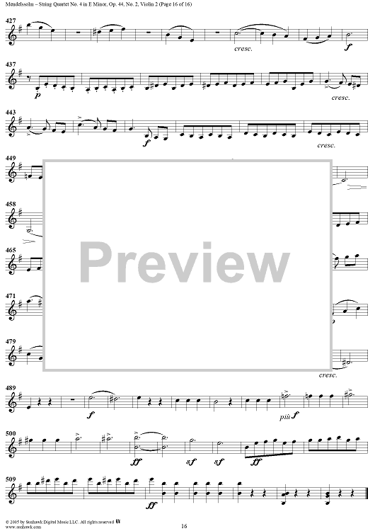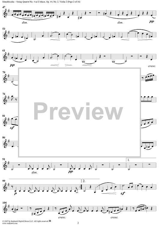"String Quartet No. 4 in E Minor, Op. 44, No. 2 - Violin 2" Sheet Music by Felix Mendelssohn