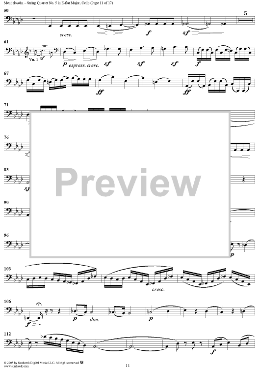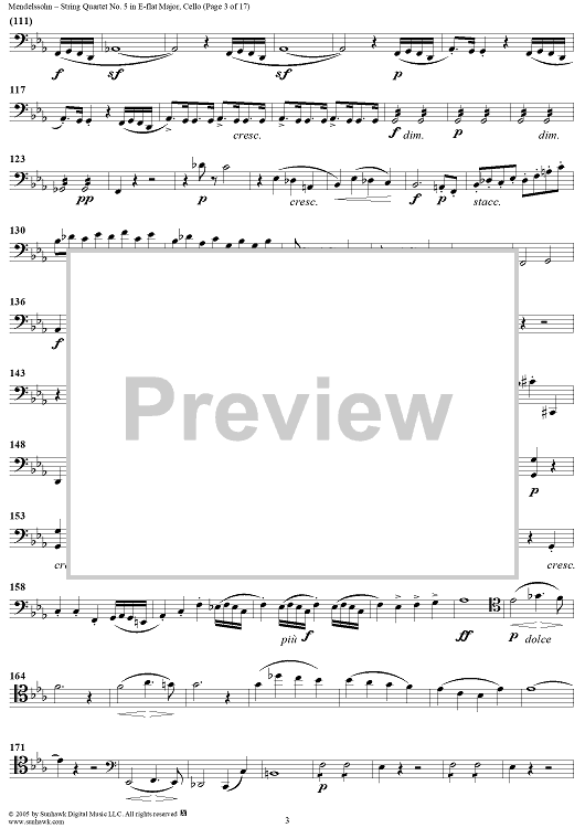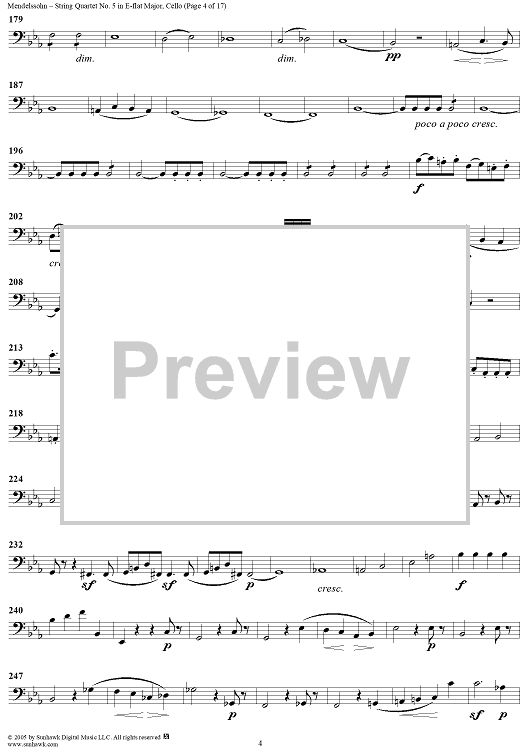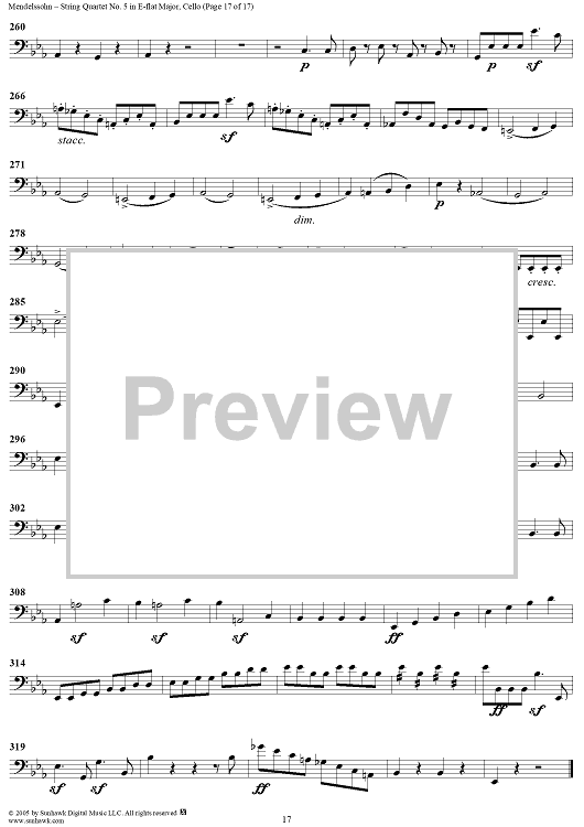 Digital Sheet Music for String Quartet No. 5 in E-flat Major, Op. 44, No. 3 - Cello by Felix Mendelssohn scored for String Quartet; id:309537