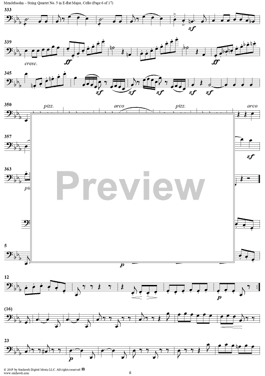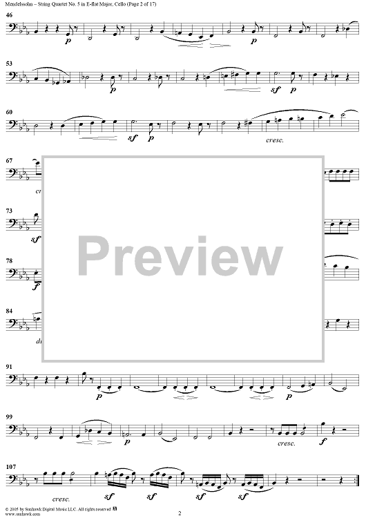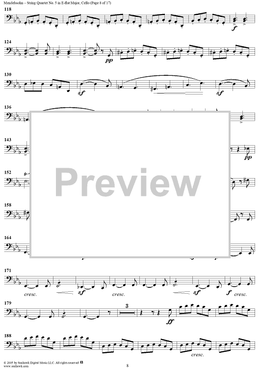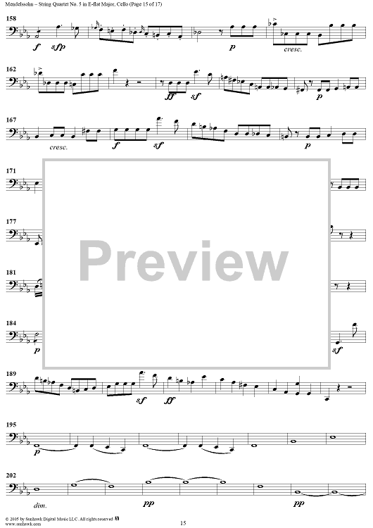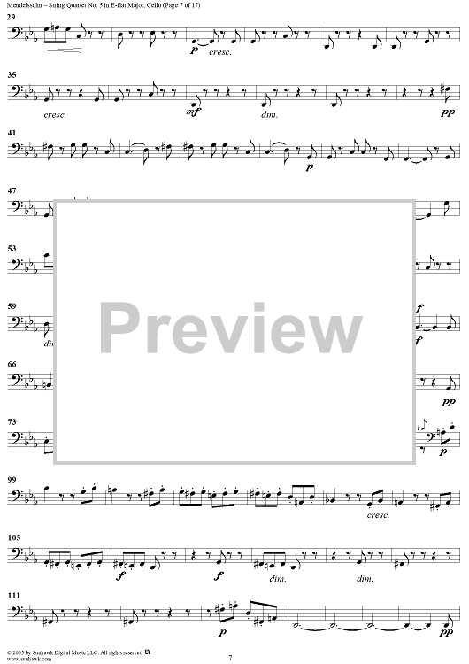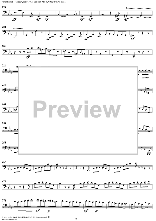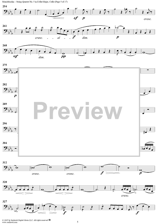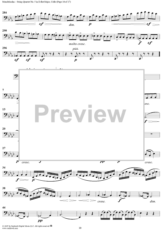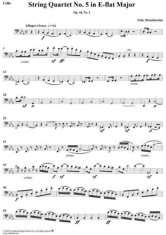 "String Quartet No. 5 in E-flat Major, Op. 44, No. 3 - Cello" Sheet Music by Felix Mendelssohn