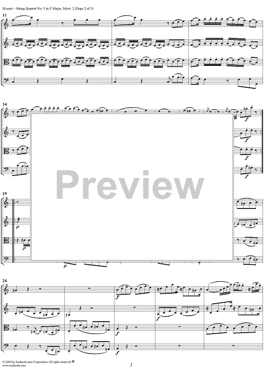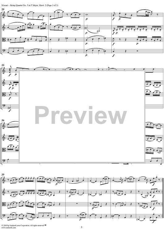 "String Quartet No. 5, Movement 2 - Score" Sheet Music by Wolfgang Amadeus Mozart