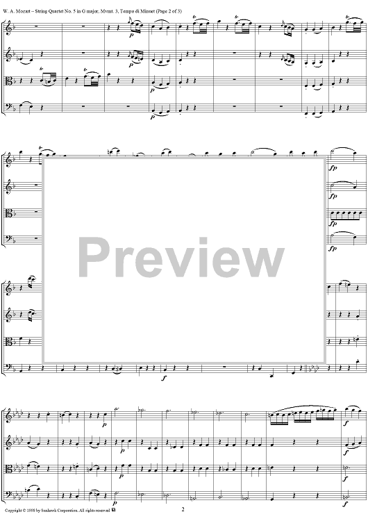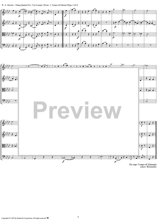 Digital Sheet Music for String Quartet No. 5, Movement 3 - Score by Wolfgang Amadeus Mozart scored for String Quartet; id:252637