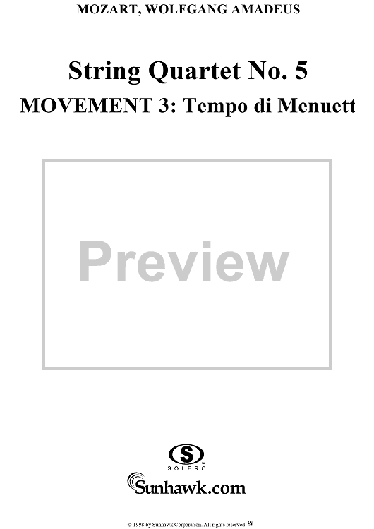 "String Quartet No. 5, Movement 3 - Score" Sheet Music by Wolfgang Amadeus Mozart