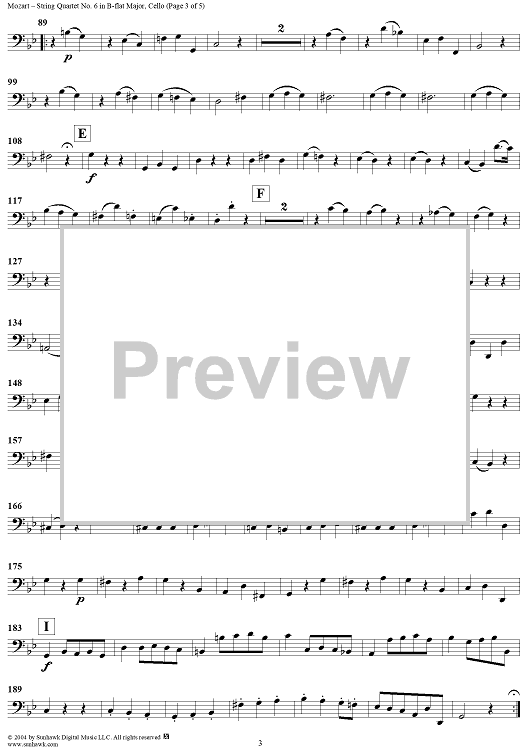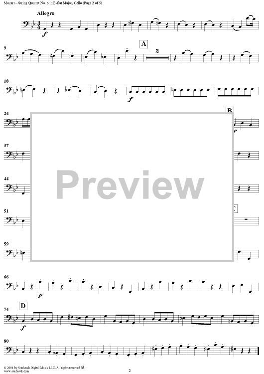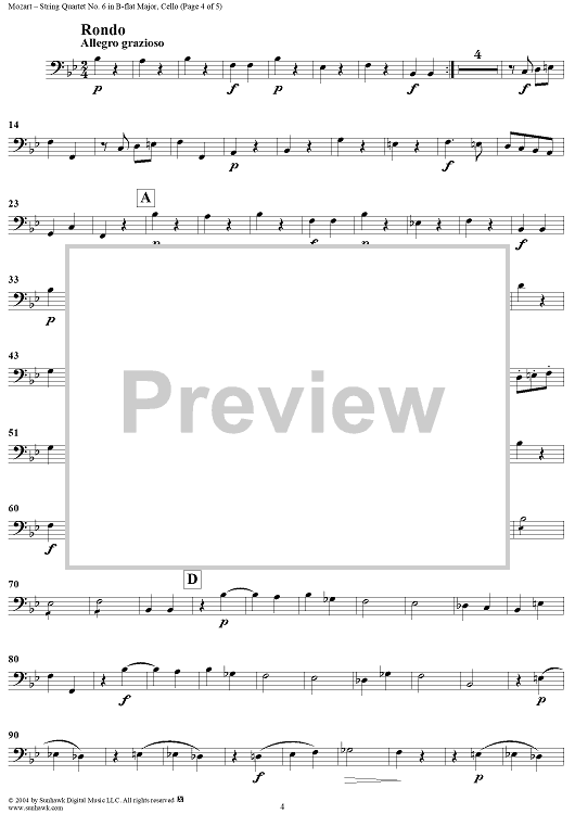 Digital Sheet Music for String Quartet No. 6 in B-flat Major, K159 - Cello by Wolfgang Amadeus Mozart scored for String Quartet; id:304108