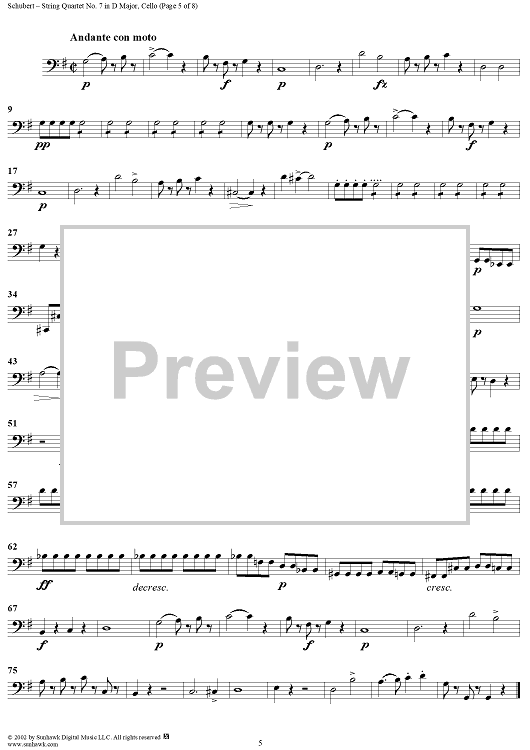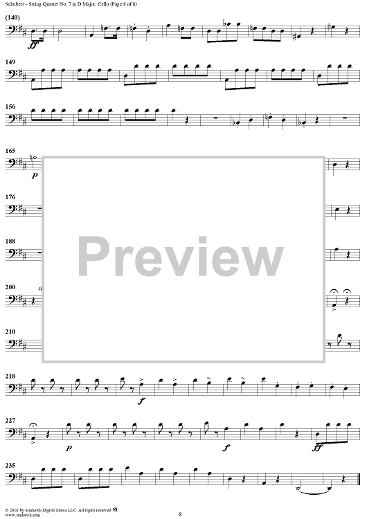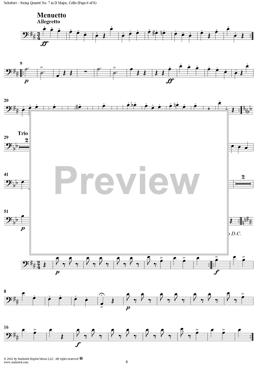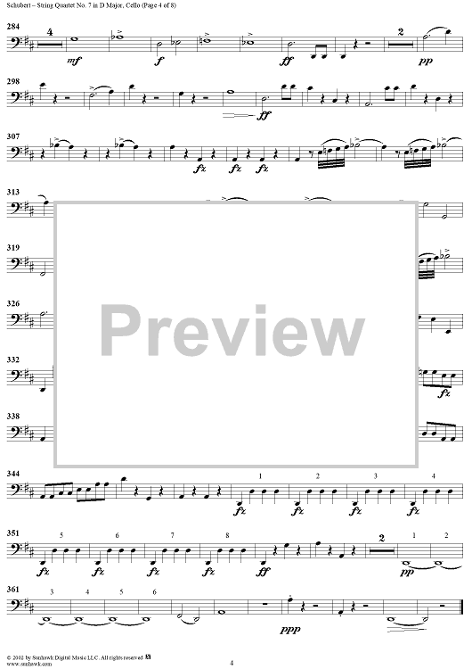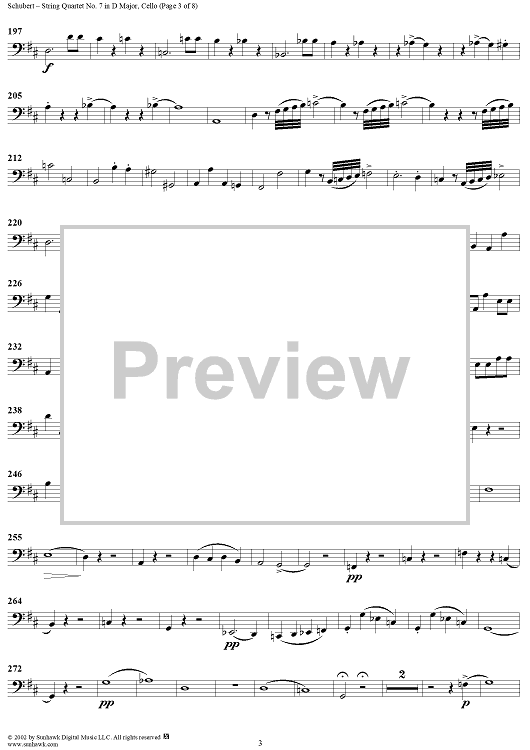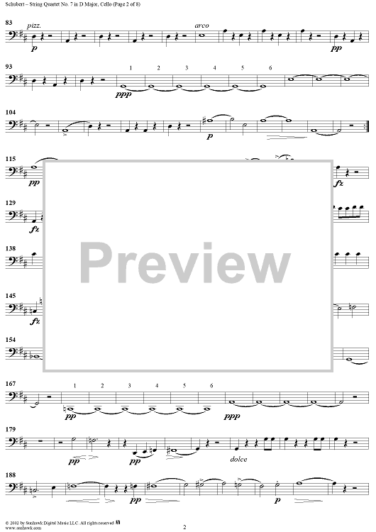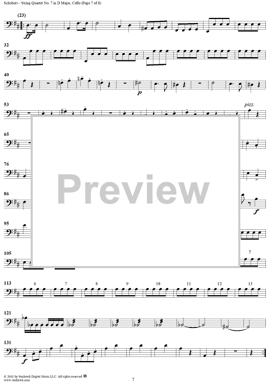Digital Sheet Music for String Quartet No. 7 in D Major, D94 - Cello by Franz Schubert scored for String Quartet; id:256379