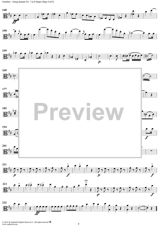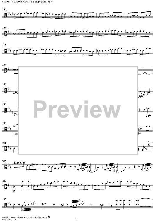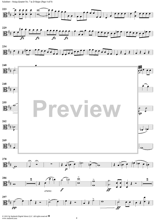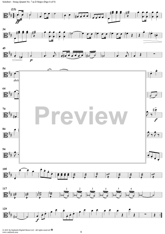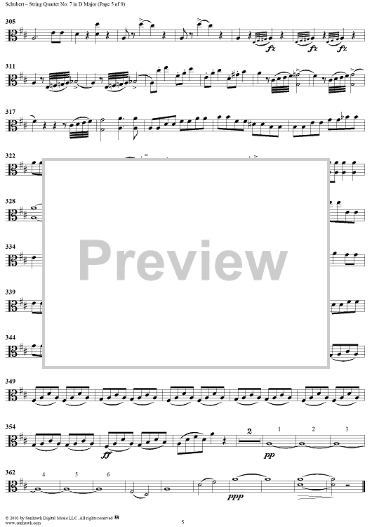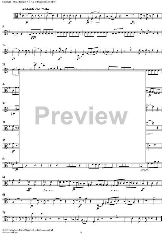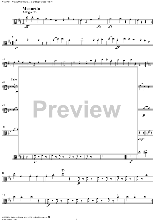 Digital Sheet Music for String Quartet No. 7 in D Major, D94 - Viola by Franz Schubert scored for String Quartet; id:256383