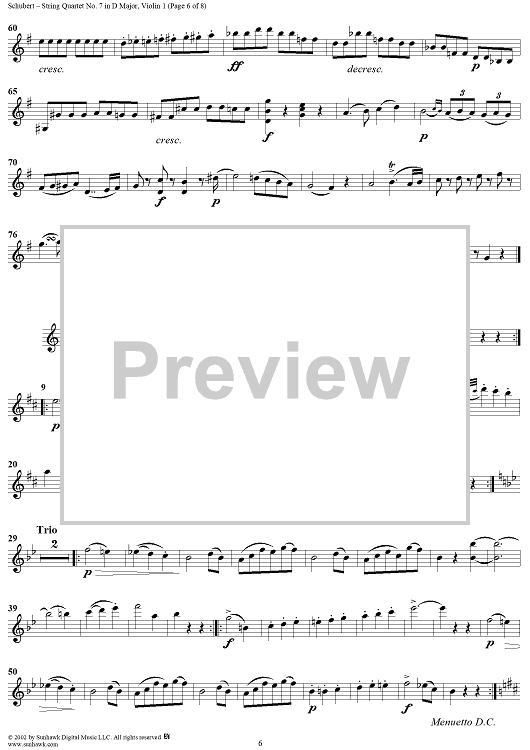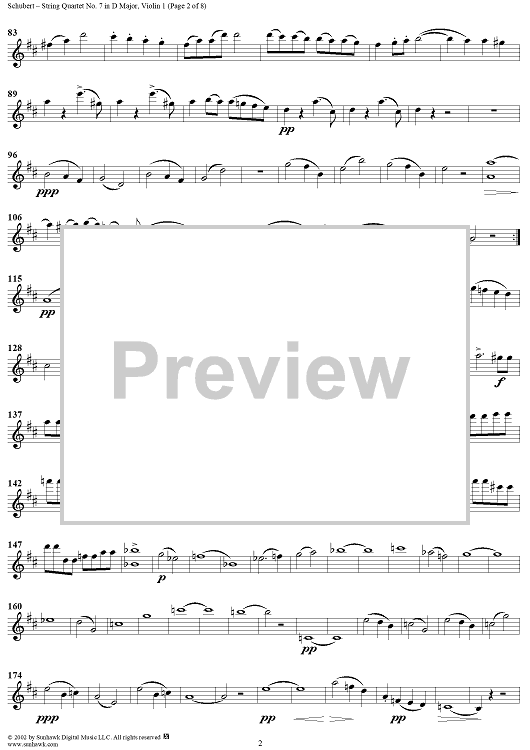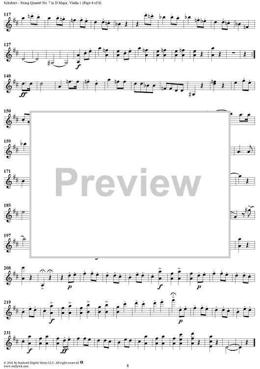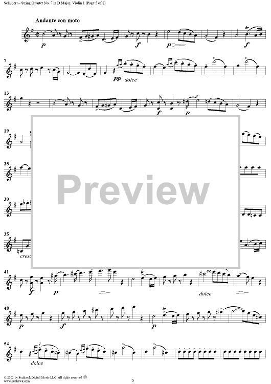Digital Sheet Music for String Quartet No. 7 in D Major, D94 - Violin 1 by Franz Schubert scored for String Quartet; id:256384