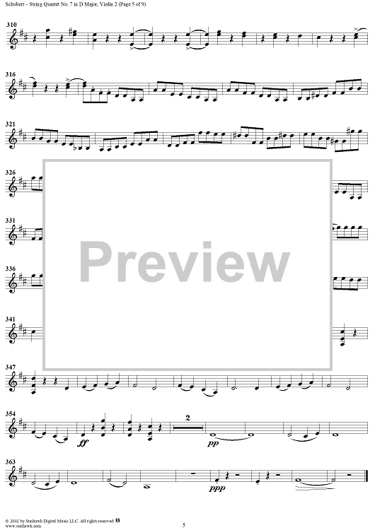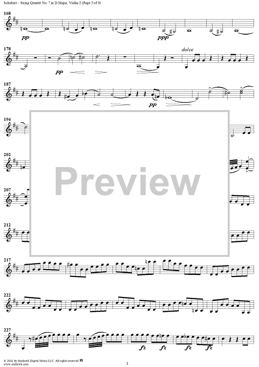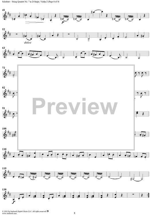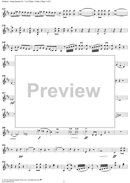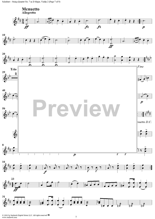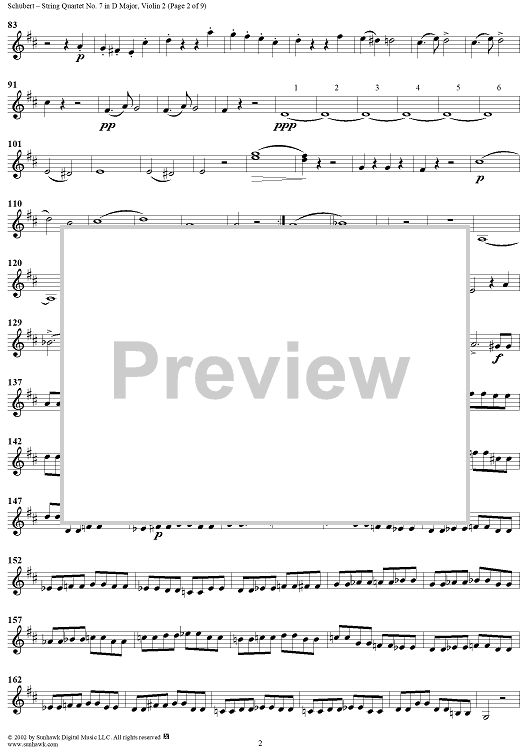 Digital Sheet Music for String Quartet No. 7 in D Major, D94 - Violin 2 by Franz Schubert scored for String Quartet; id:256380