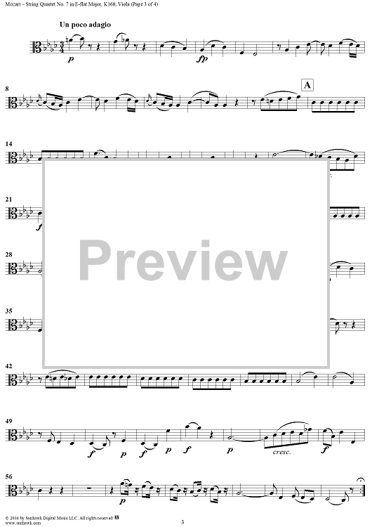 "String Quartet No. 7 in E-flat Major, K160 - Viola" Sheet Music by Wolfgang Amadeus Mozart