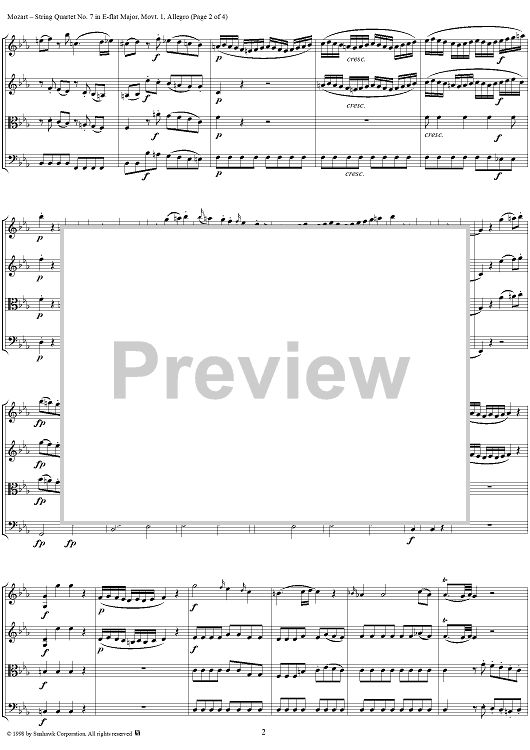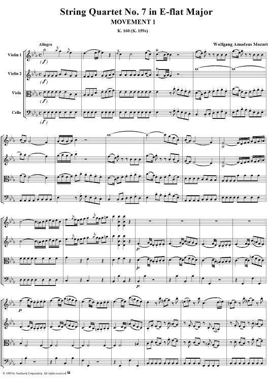 "String Quartet No. 7, Movement 1 - Score" Sheet Music by Wolfgang Amadeus Mozart