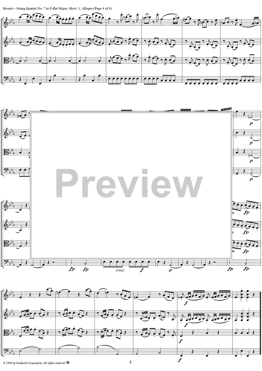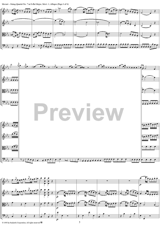 Digital Sheet Music for String Quartet No. 7, Movement 1 - Score by Wolfgang Amadeus Mozart scored for String Quartet; id:108905