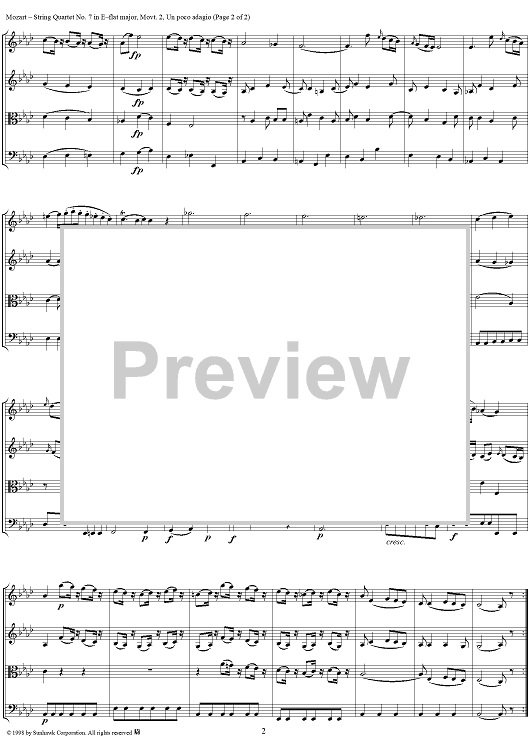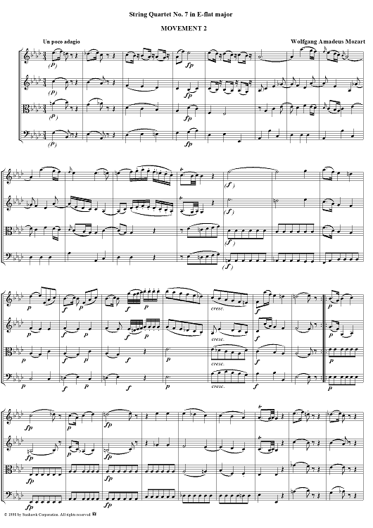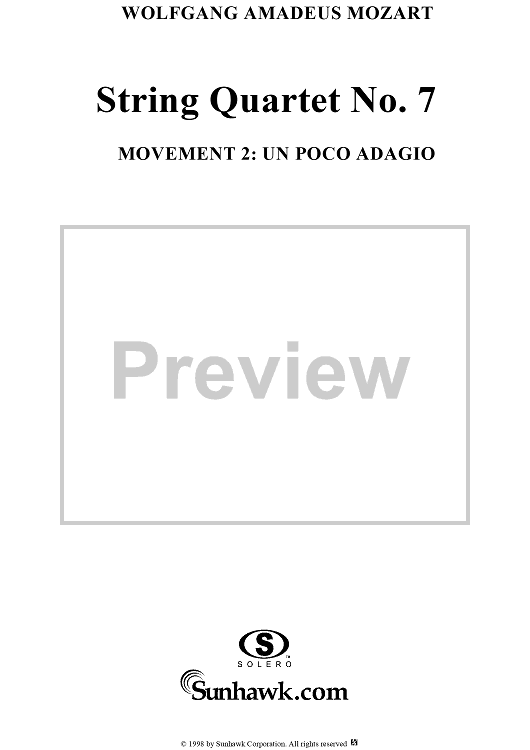 "String Quartet No. 7, Movement 2 - Score" Sheet Music by Wolfgang Amadeus Mozart