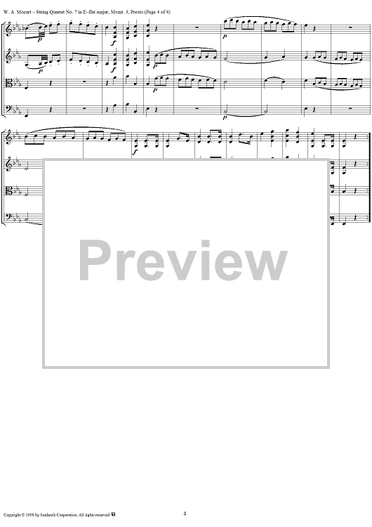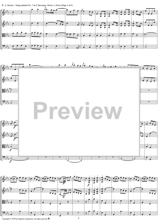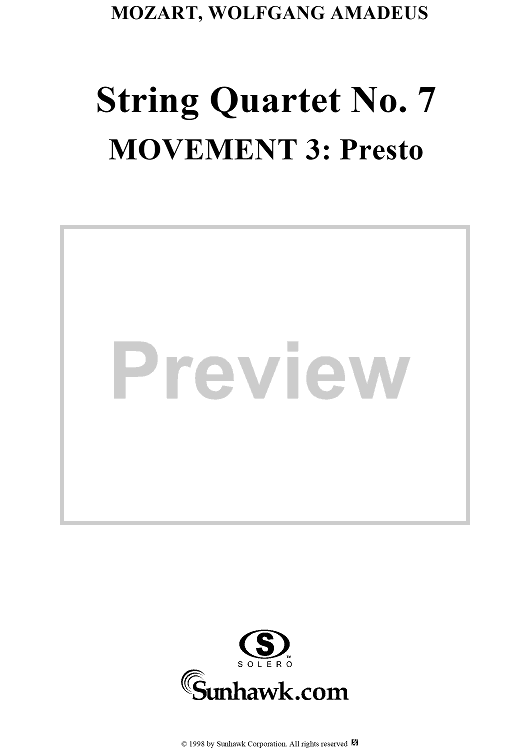 Digital Sheet Music for String Quartet No. 7, Movement 3 - Score by Wolfgang Amadeus Mozart scored for String Quartet; id:252638