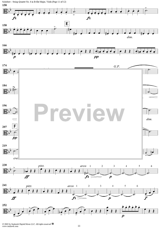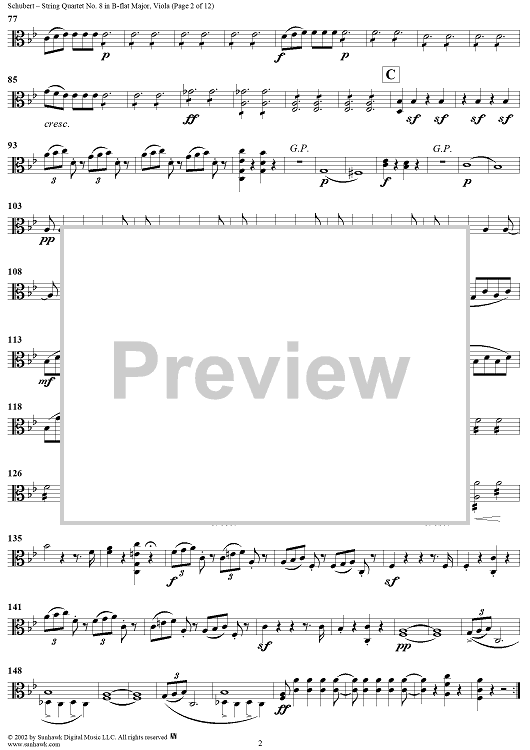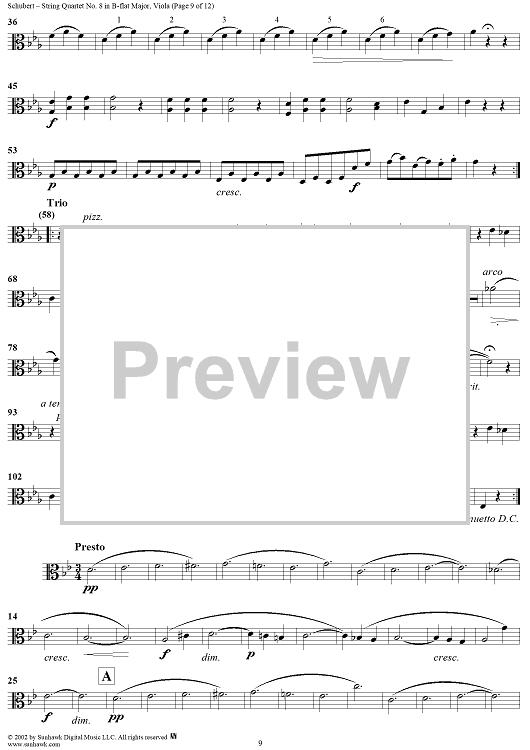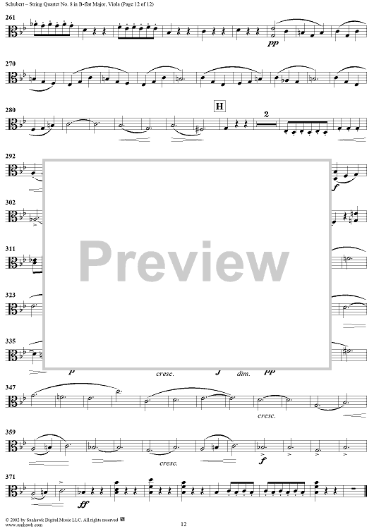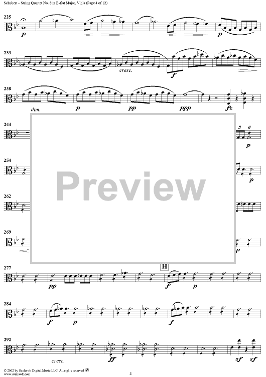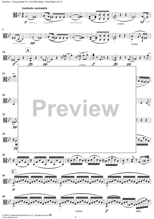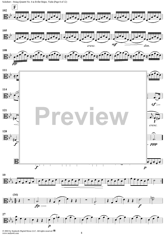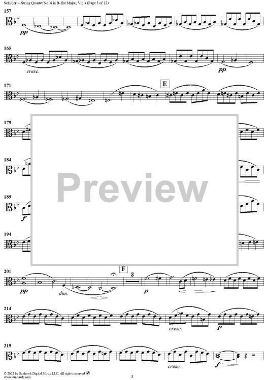 Digital Sheet Music for String Quartet No. 8 in B-flat Major, Op. posth. 168 - Viola by Franz Schubert scored for String Quartet; id:256385