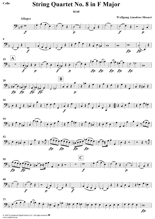 "String Quartet No. 8 in F Major, K168 - Cello" Sheet Music by Wolfgang Amadeus Mozart