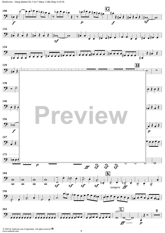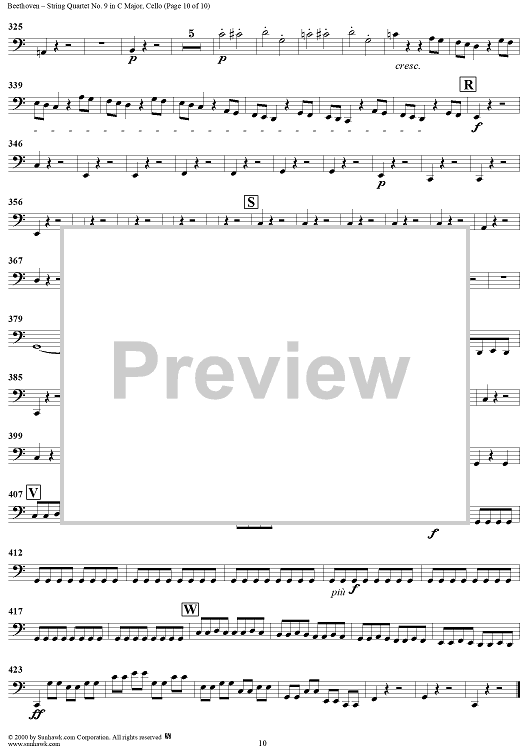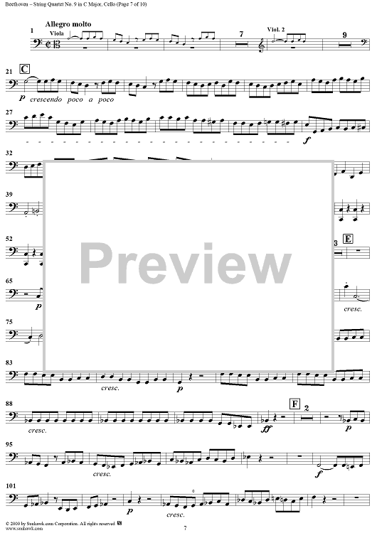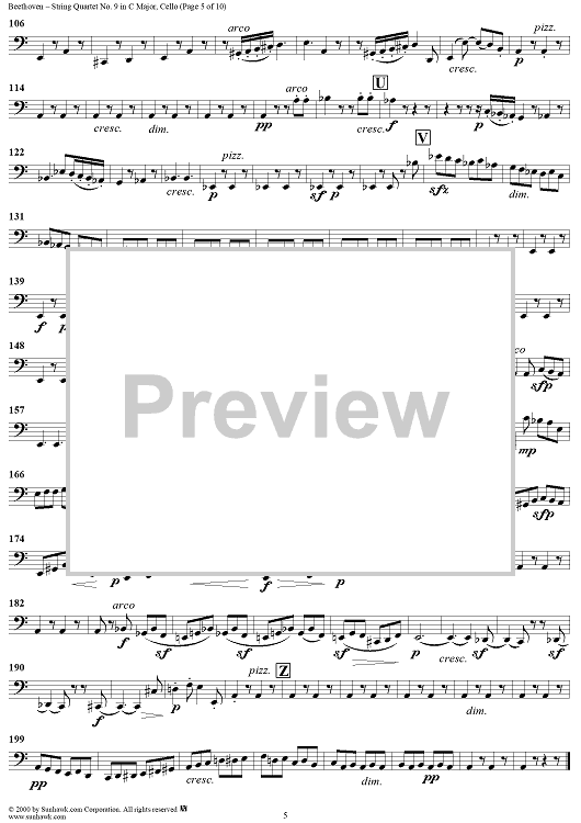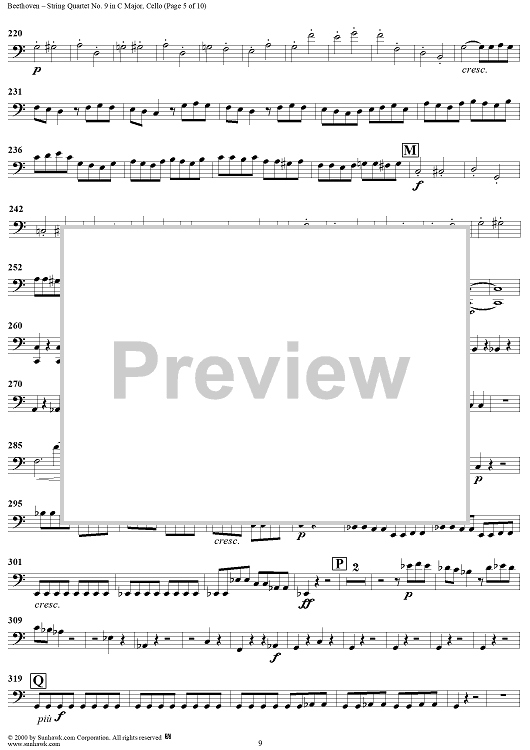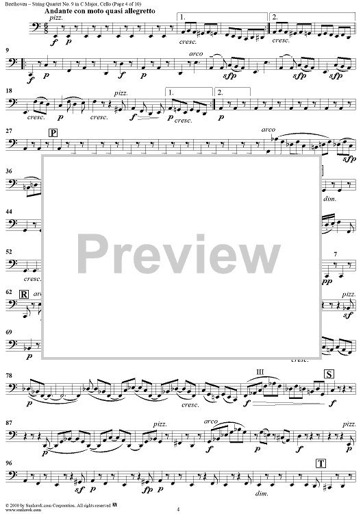 Digital Sheet Music for String Quartet No. 9 in C Major, Op. 59, No. 3 - Cello by Ludwig van Beethoven scored for String Quartet; id:275308