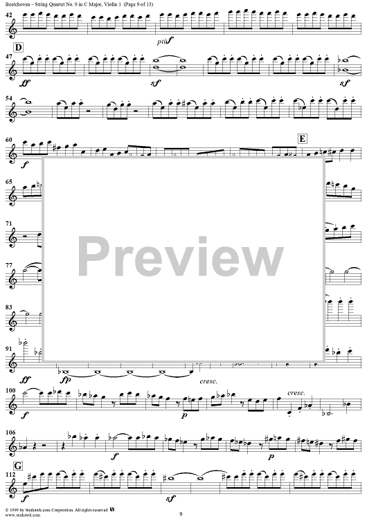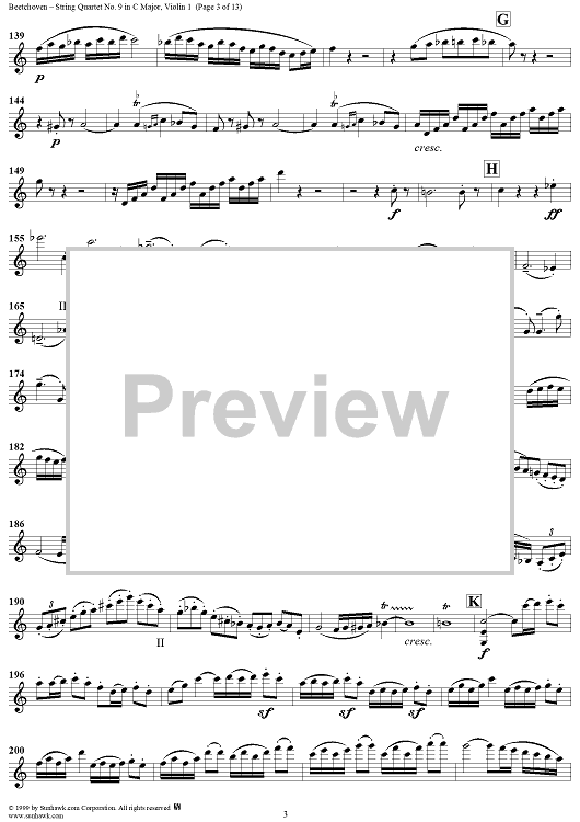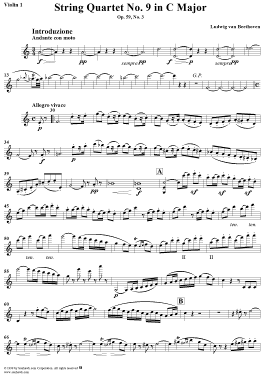 "String Quartet No. 9 in C Major, Op. 59, No. 3 - Violin 1" Sheet Music by Ludwig van Beethoven