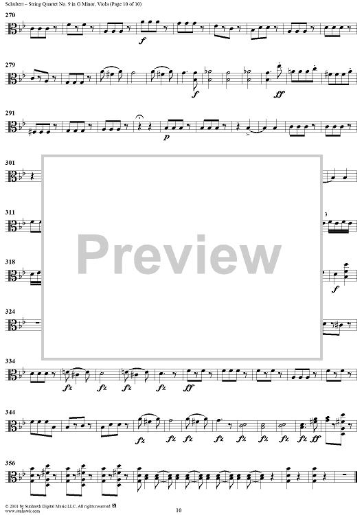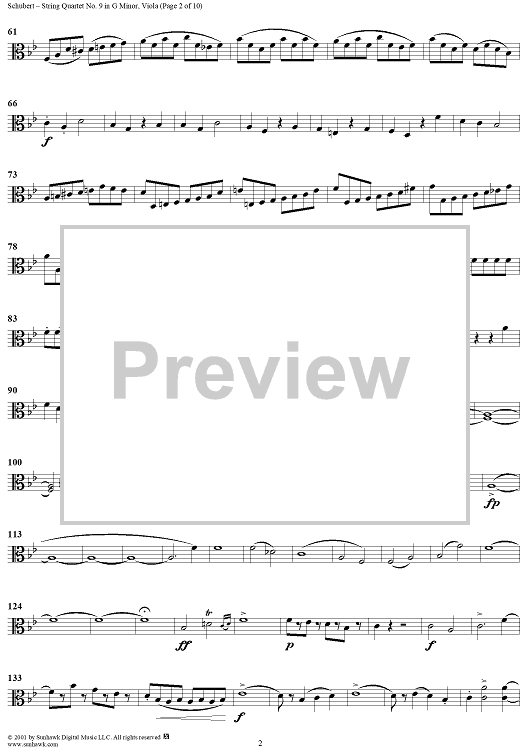 "String Quartet No. 9 in G Minor, D173 - Viola" Sheet Music by Franz Schubert