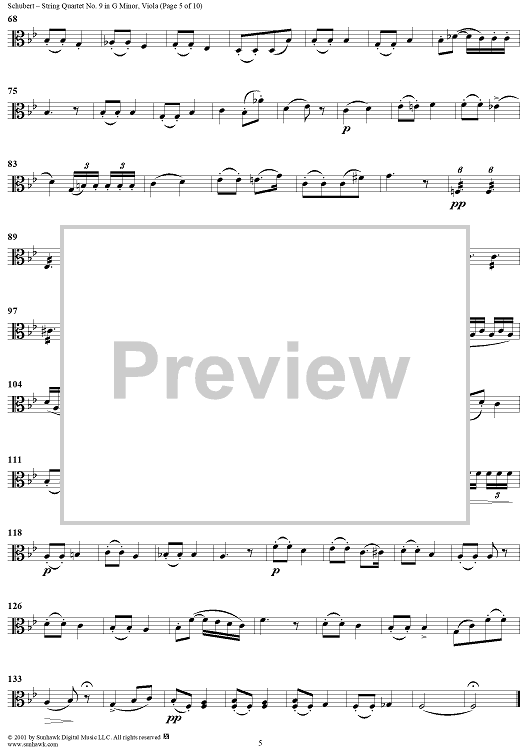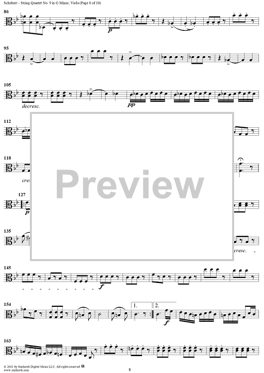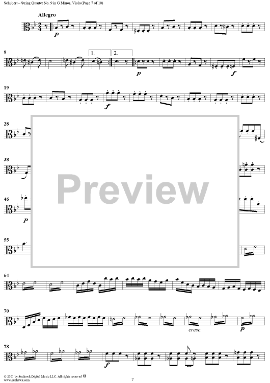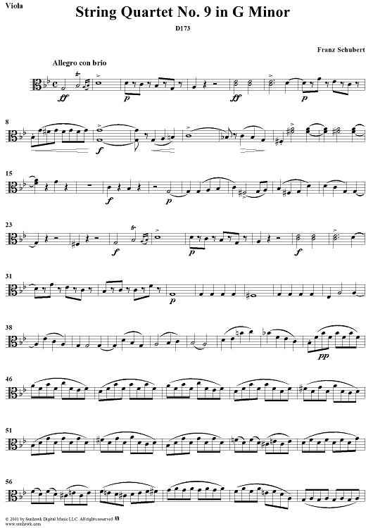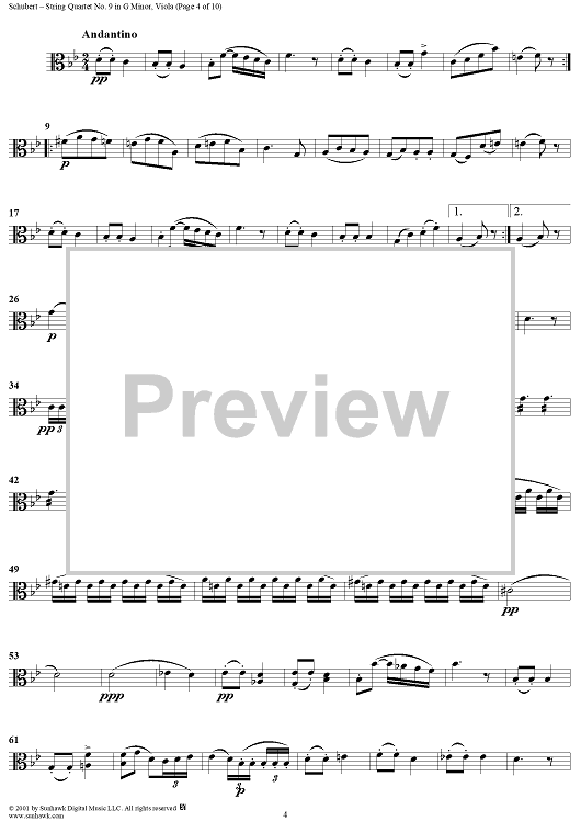 Digital Sheet Music for String Quartet No. 9 in G Minor, D173 - Viola by Franz Schubert scored for String Quartet; id:256388