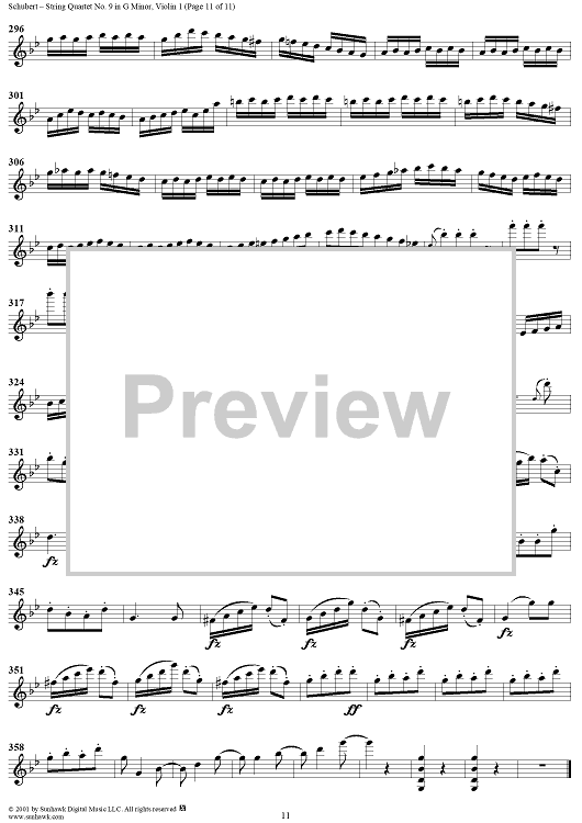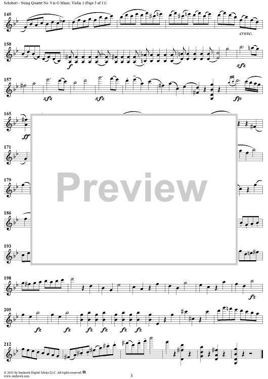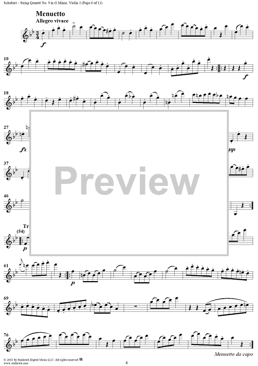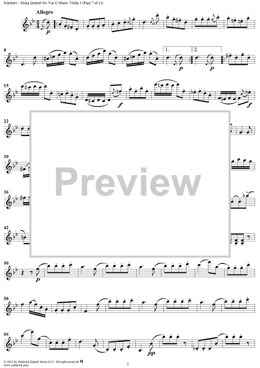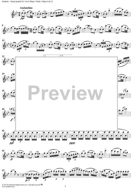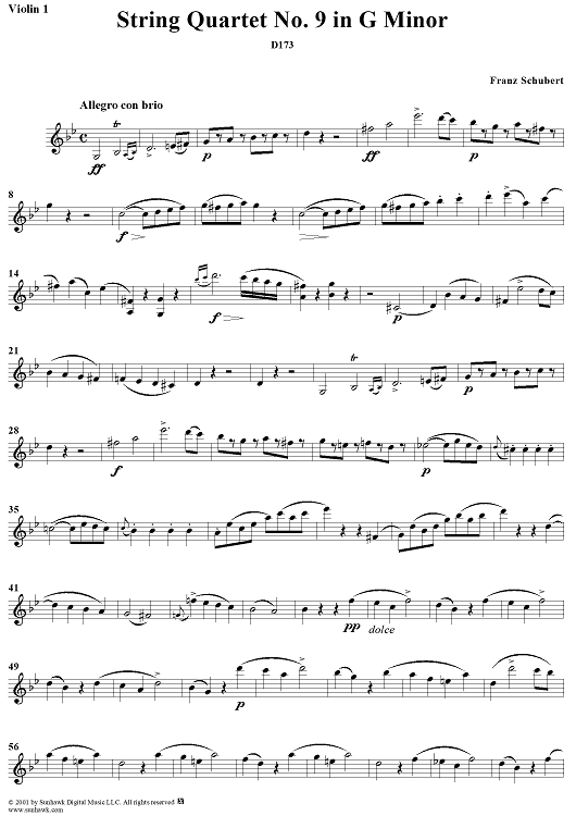 Digital Sheet Music for String Quartet No. 9 in G Minor, D173 - Violin 1 by Franz Schubert scored for String Quartet; id:256389