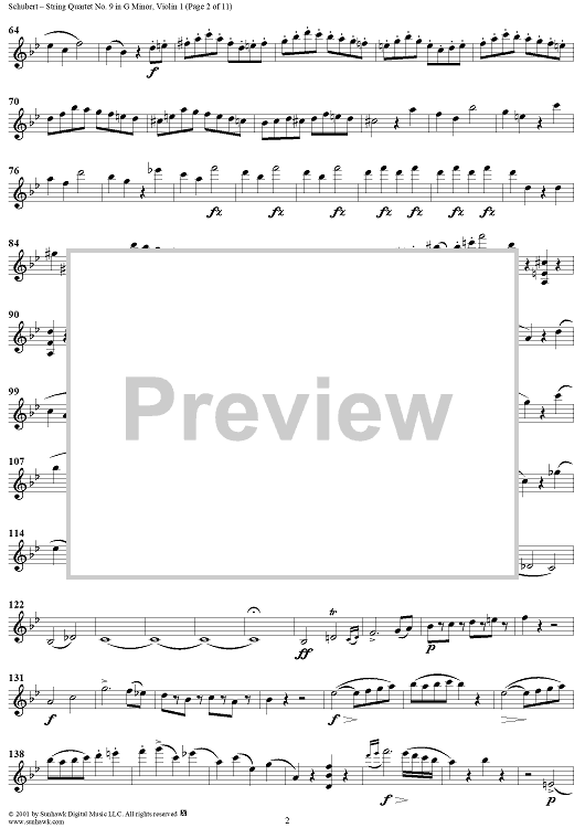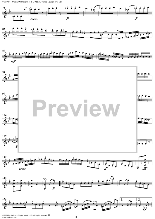 "String Quartet No. 9 in G Minor, D173 - Violin 1" Sheet Music by Franz Schubert