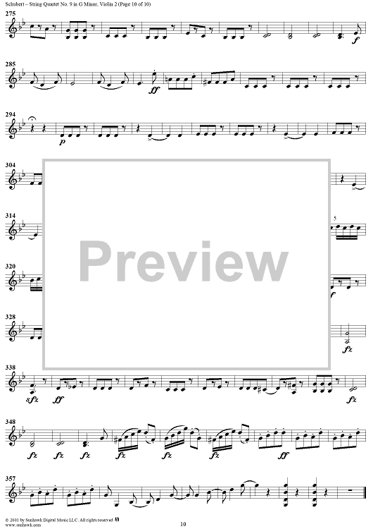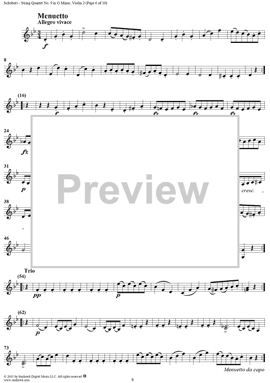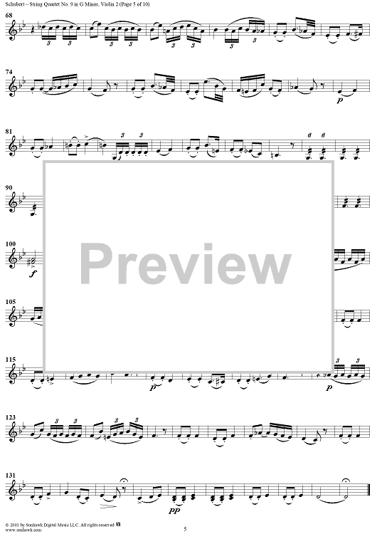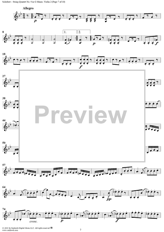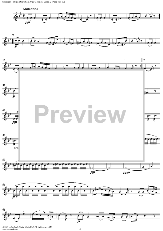 Digital Sheet Music for String Quartet No. 9 in G Minor, D173 - Violin 2 by Franz Schubert scored for String Quartet; id:256394