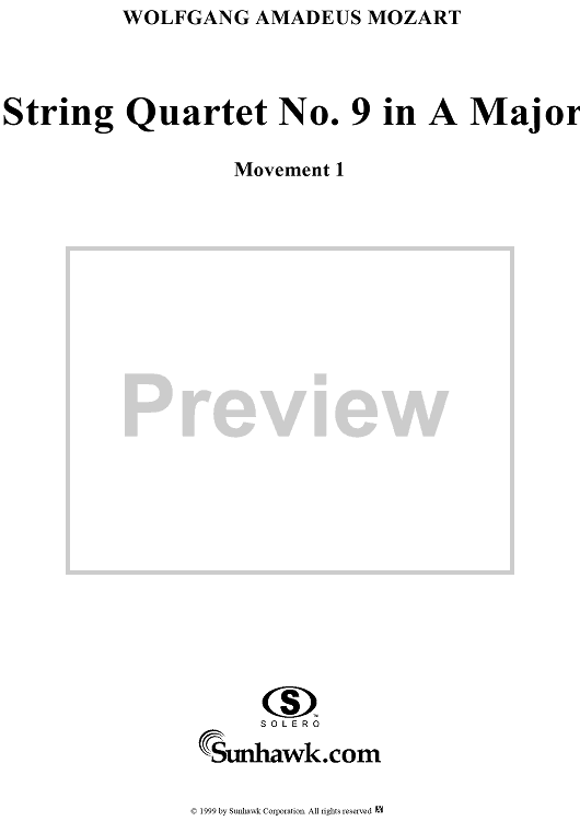 "String Quartet No. 9, Movement 1 - Score" Sheet Music by Wolfgang Amadeus Mozart