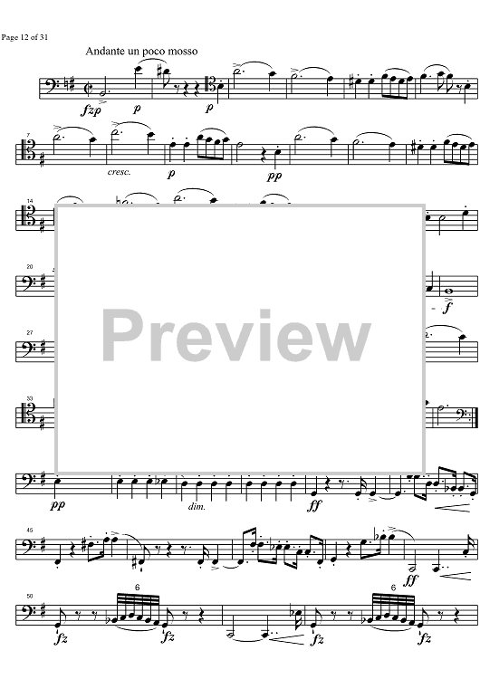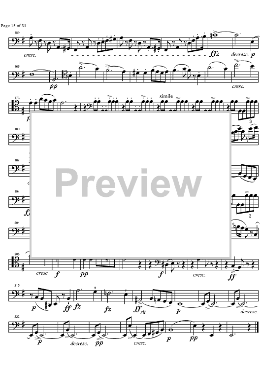 "String Quartet No.15 G Major D887 - Cello" Sheet Music by Franz Schubert