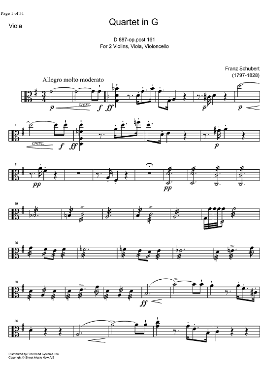 Digital Sheet Music for String Quartet No.15 G Major D887 - Viola by Franz Schubert scored for String Quartet; id:326187