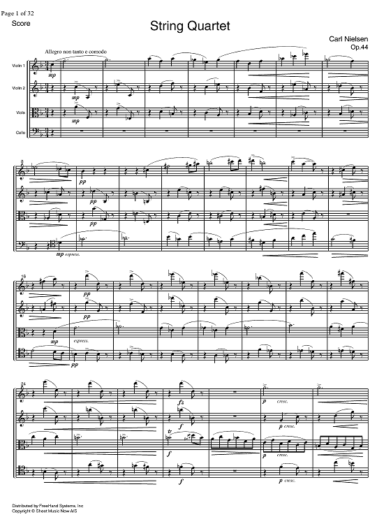 Digital Sheet Music for String Quartet Op.44 - Score by Carl Nielsen scored for String Quartet; id:331786