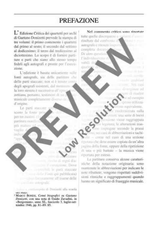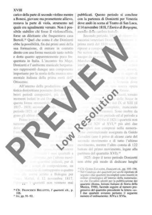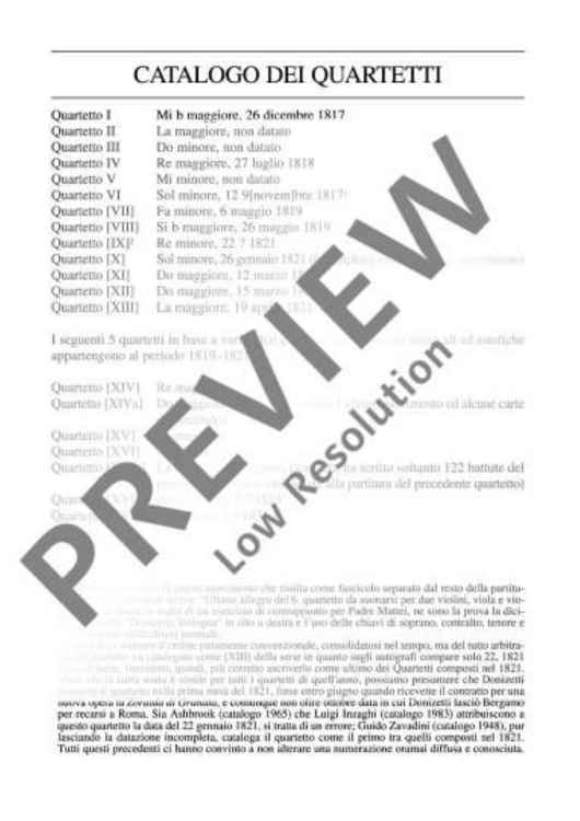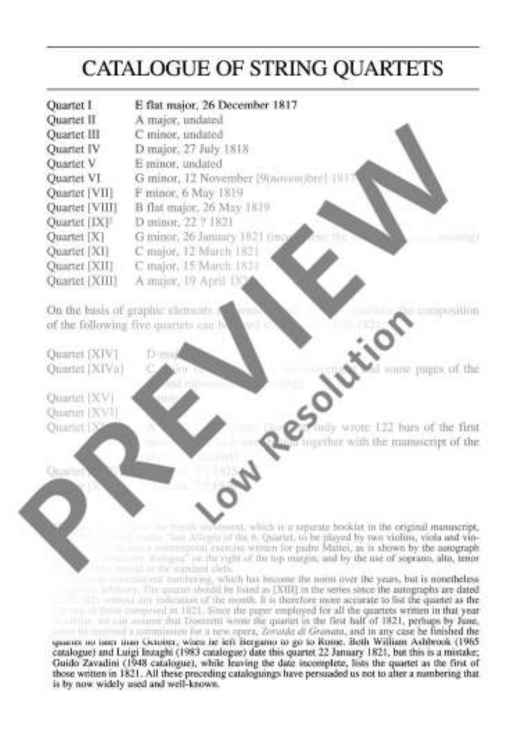 Mainly famous as an opera composer, Donizetti is also the most important Italian representative of the string quartet genre. If the first quartets can be regarded as experiments of the young composer with a strictly classical form, the intermediate and later pieces are unmistakable expressions of a mature musical mind. The String Quartets Nos. 1-6 complete the two volumes already published (Nos. 7–12, 13–18); for the first time, the editions present a complete, critically edited musical text.