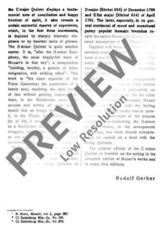 "String Quintet C minor - Full Score" Sheet Music by Wolfgang Amadeus Mozart