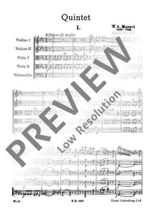 "String Quintet Eb major - Full Score" Sheet Music by Wolfgang Amadeus Mozart