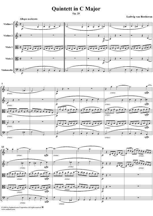 Digital Sheet Music for String Quintet in C Major op. 29 ("Storm") - Full Score by Ludwig van Beethoven scored for 2 Violins/2 Violas/Cello; id:234920