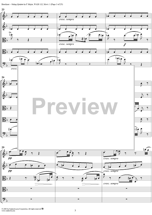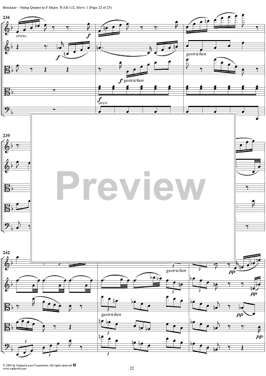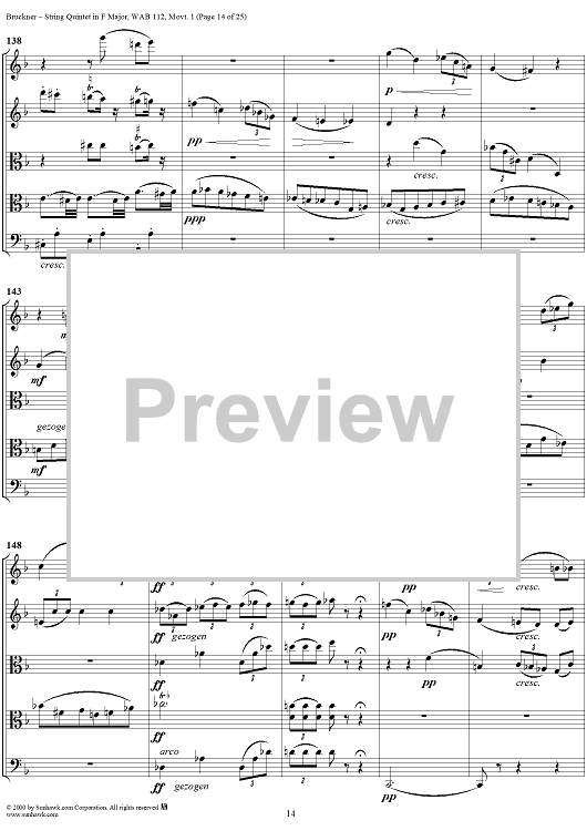 Digital Sheet Music for String Quintet in F Major, Movement 1 - Full Score by Anton Bruckner scored for String Quintet; id:274891