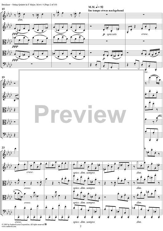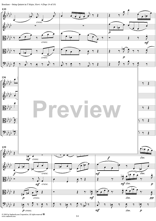 Digital Sheet Music for String Quintet in F Major, Movement 4 - Full Score by Anton Bruckner scored for String Quintet; id:274892