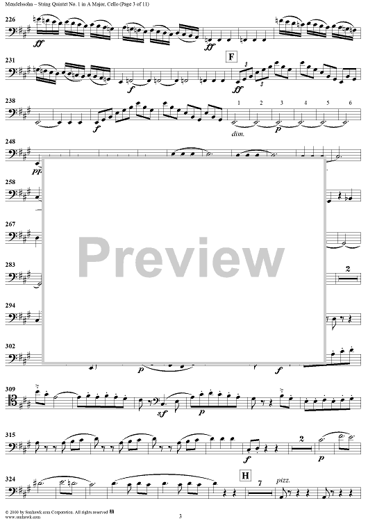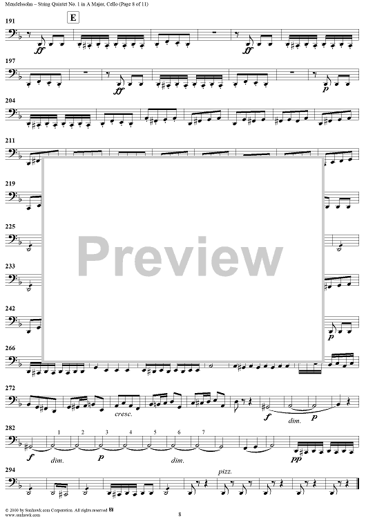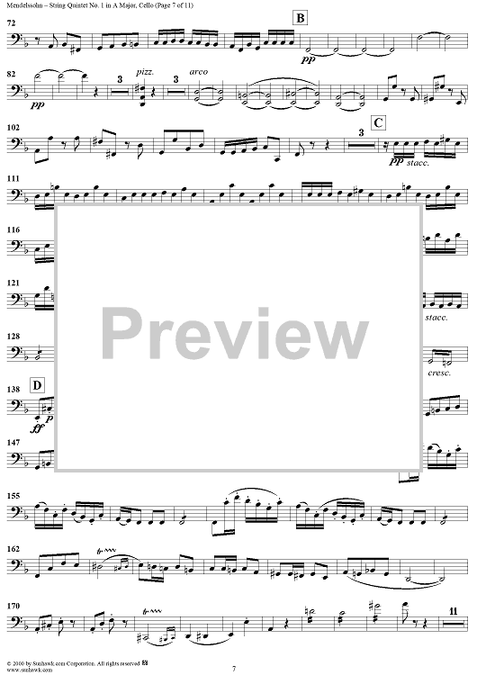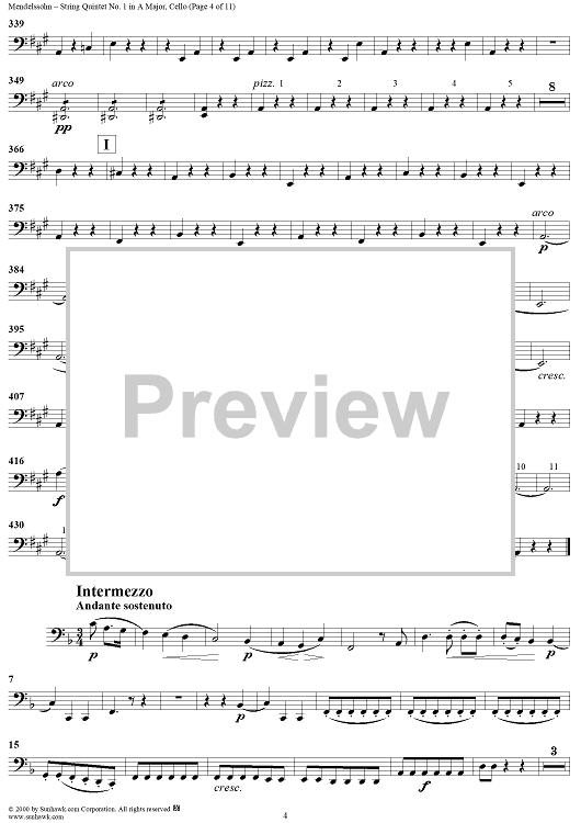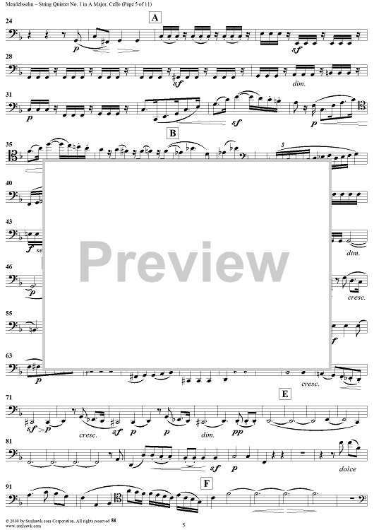 Digital Sheet Music for String Quintet No. 1 in A Major, Op. 18 - Cello by Felix Mendelssohn scored for String Quintet; id:251955