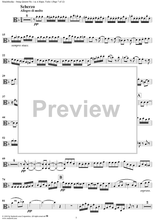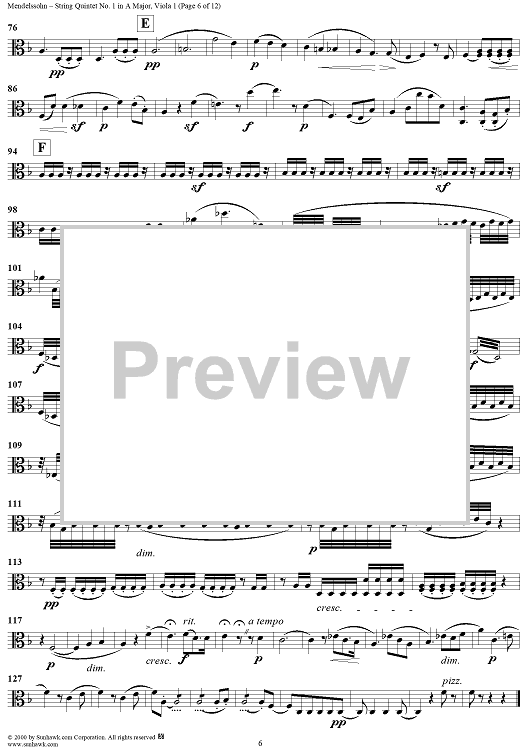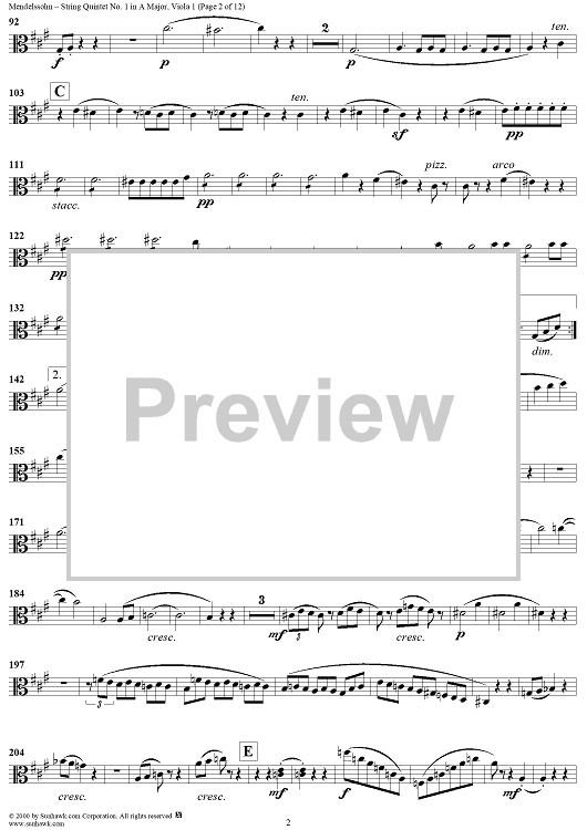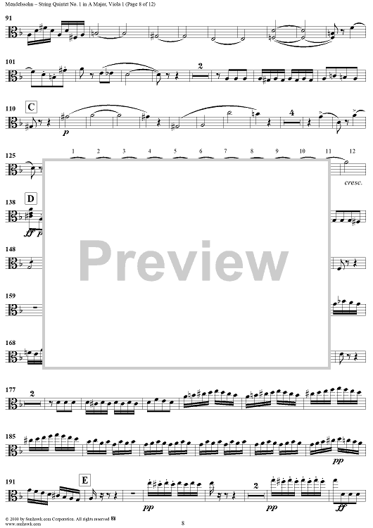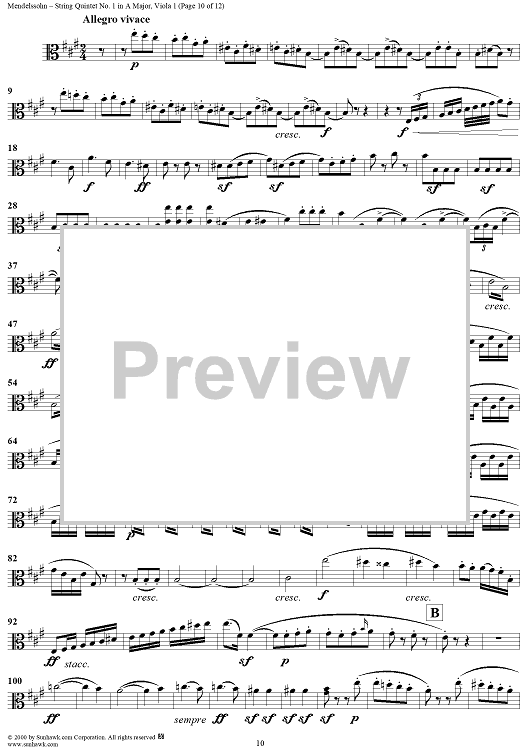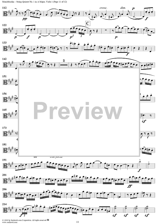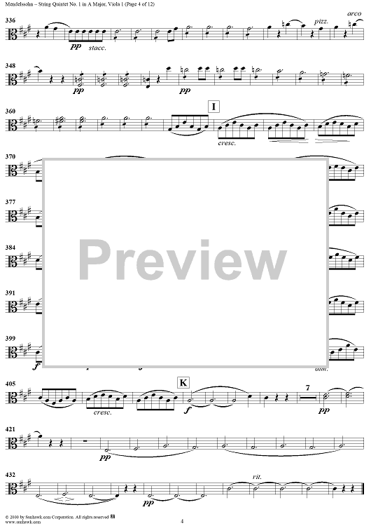 Digital Sheet Music for String Quintet No. 1 in A Major, Op. 18 - Viola 1 by Felix Mendelssohn scored for String Quintet; id:251935