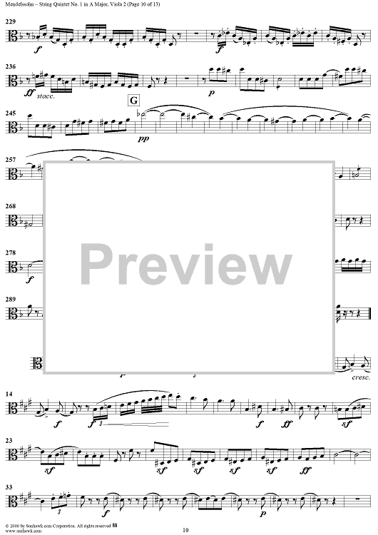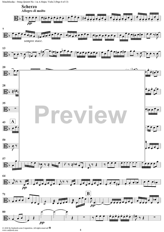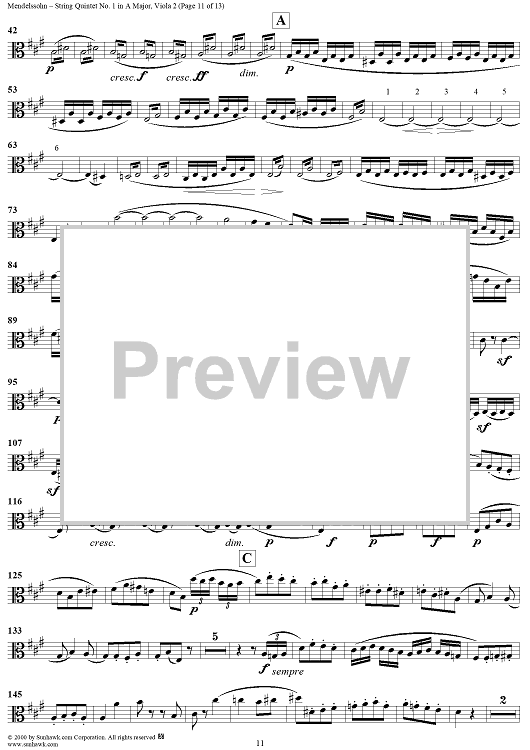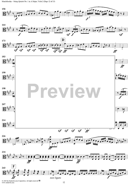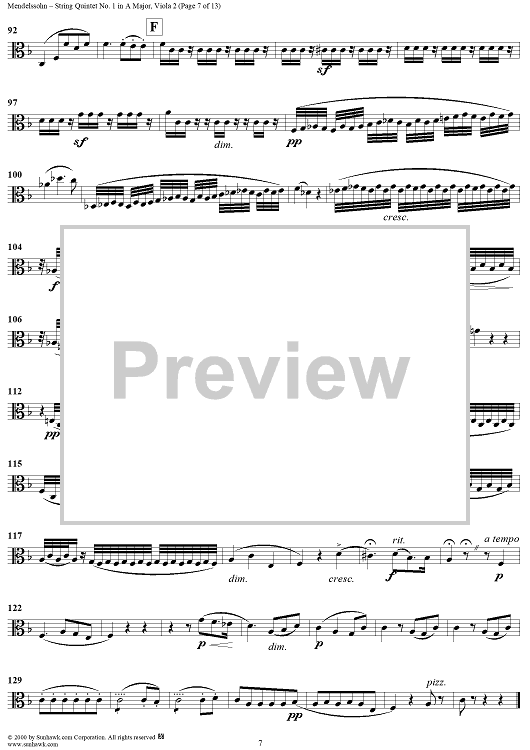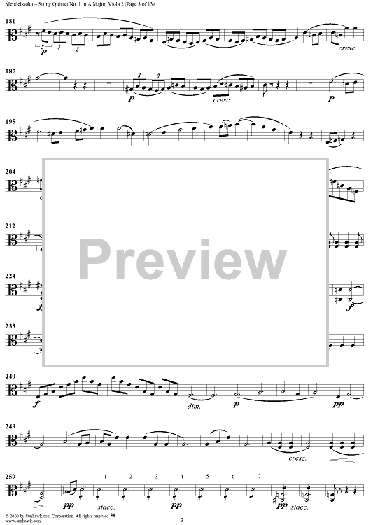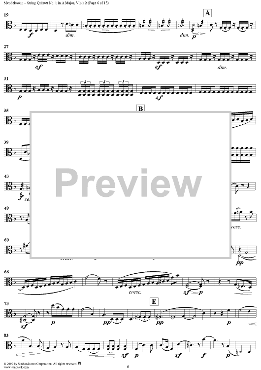Digital Sheet Music for String Quintet No. 1 in A Major, Op. 18 - Viola 2 by Felix Mendelssohn scored for String Quintet; id:251936