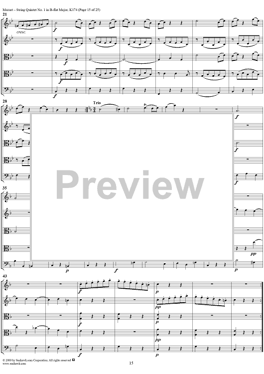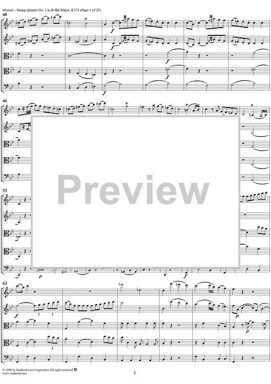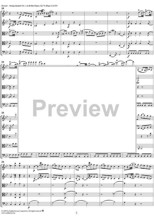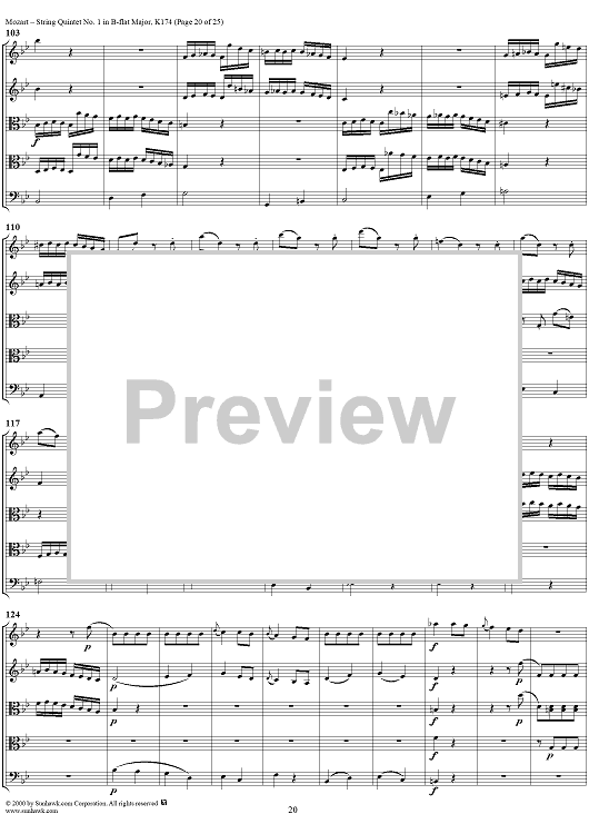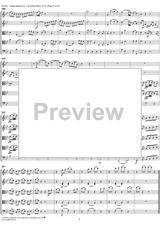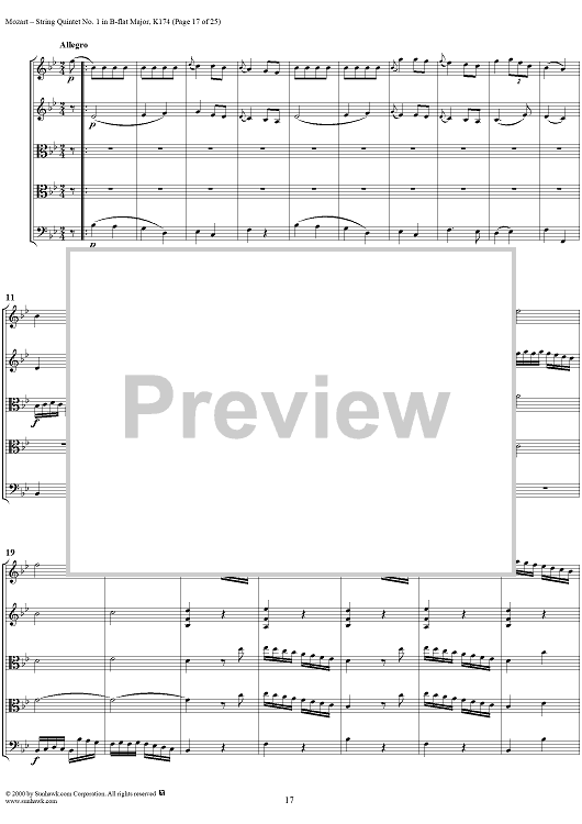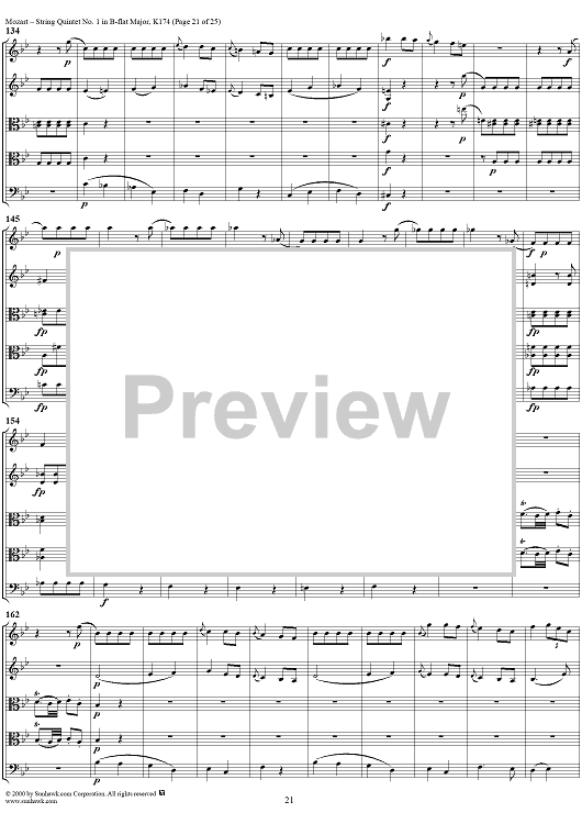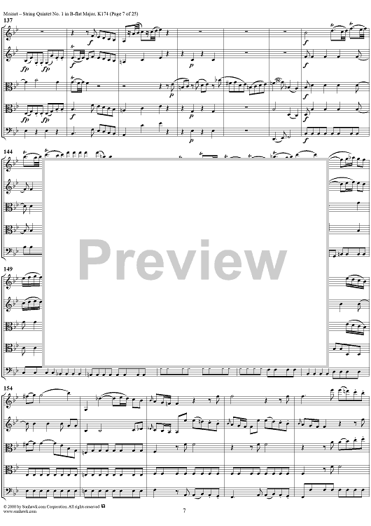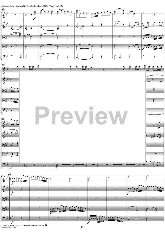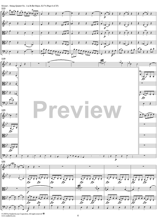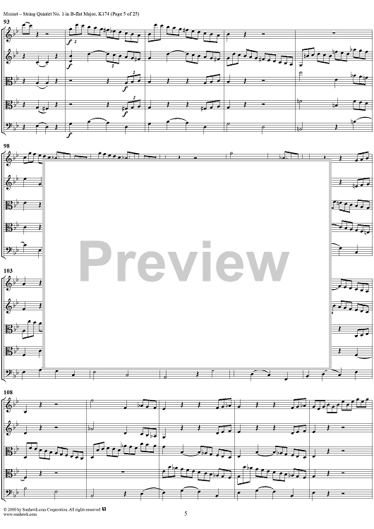 Digital Sheet Music for String Quintet No. 1 in B-Flat Major, K174 - Score by Wolfgang Amadeus Mozart scored for String Quintet; id:236730