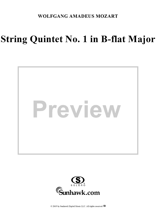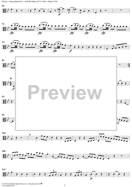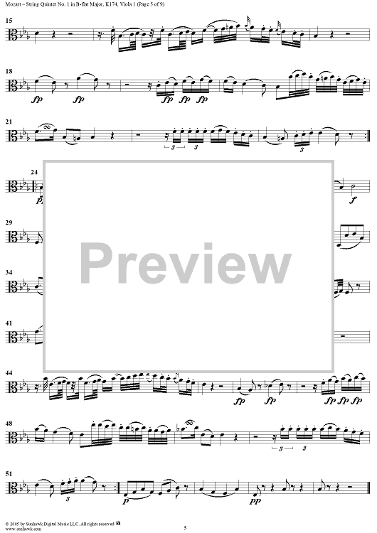 Digital Sheet Music for String Quintet No. 1 in B-Flat Major, K174 - Viola 1 by Wolfgang Amadeus Mozart scored for String Quintet; id:309279