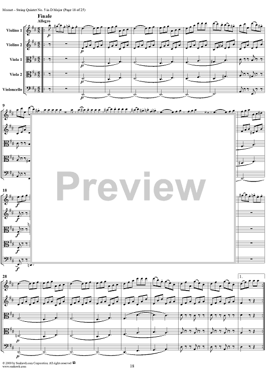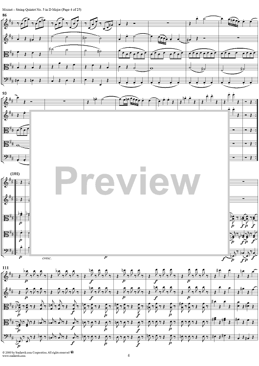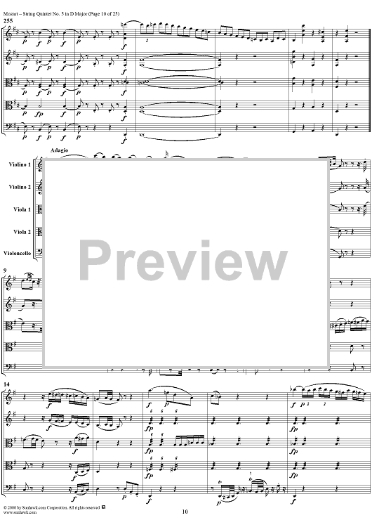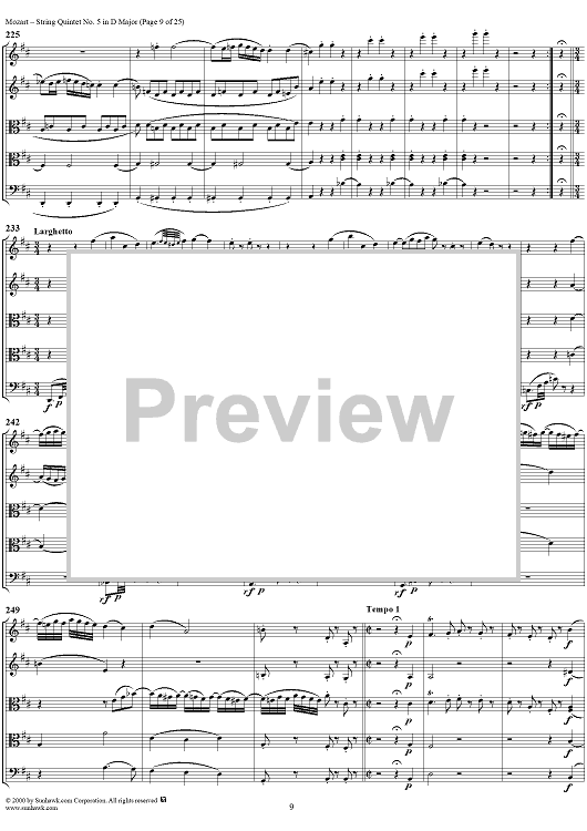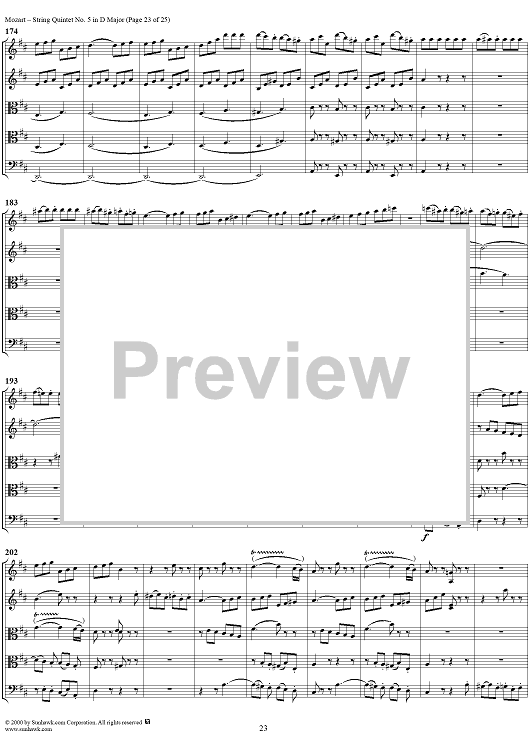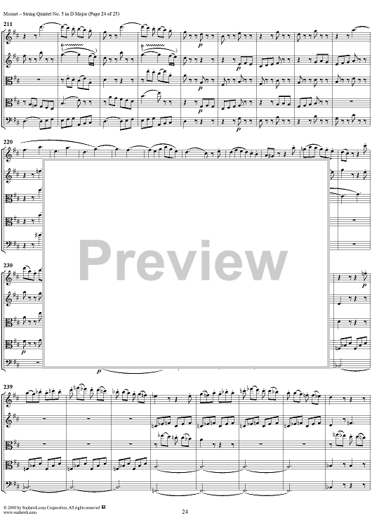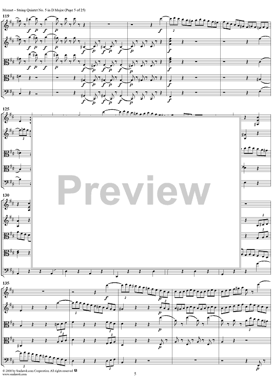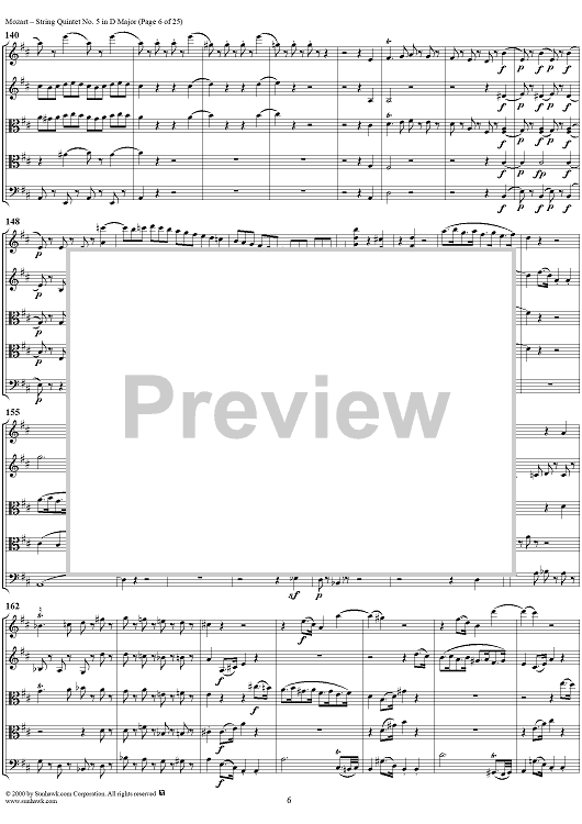 Digital Sheet Music for String Quintet No. 5 in D Major, K593 - Score by Wolfgang Amadeus Mozart scored for String Quintet; id:273630