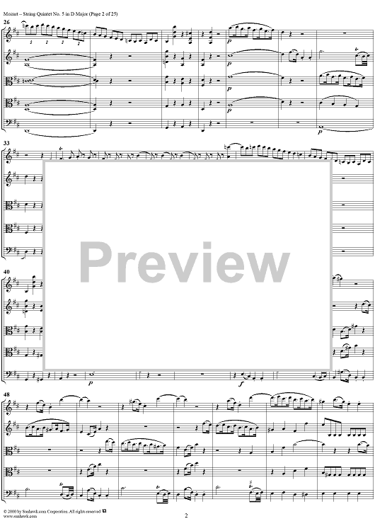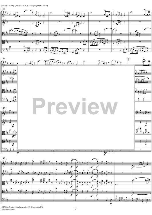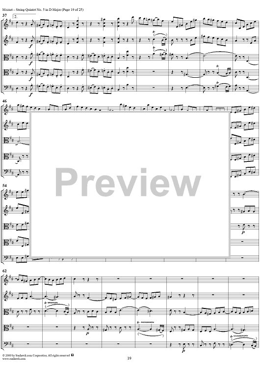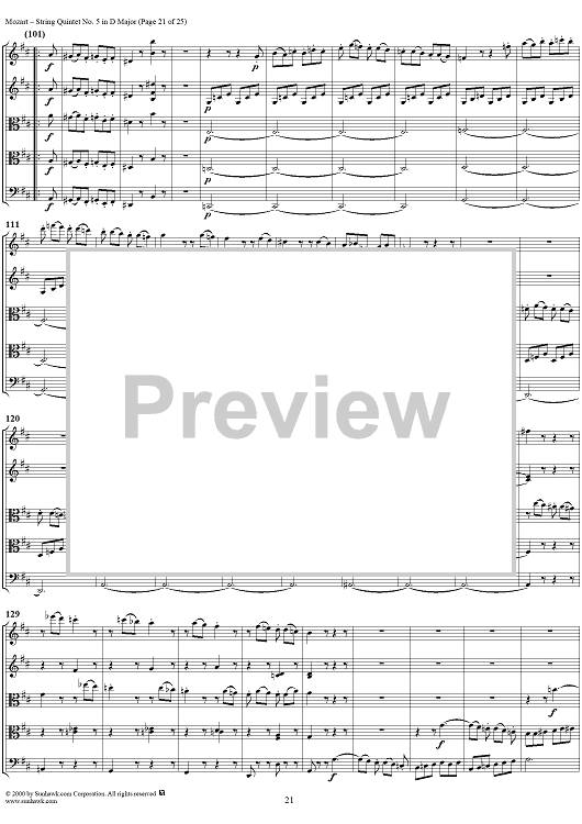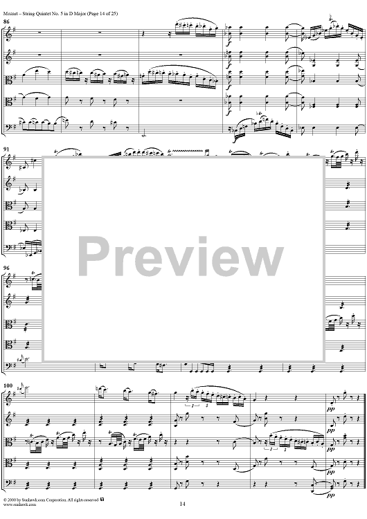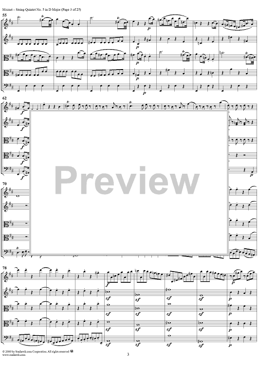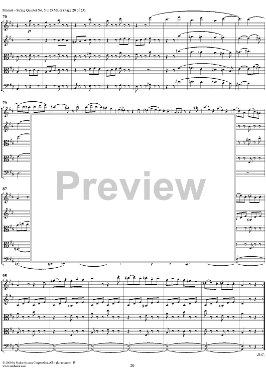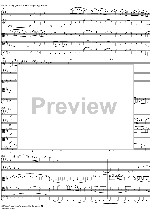 Digital Sheet Music for String Quintet No. 5 in D Major, K593 - Score by Wolfgang Amadeus Mozart scored for String Quintet; id:273630