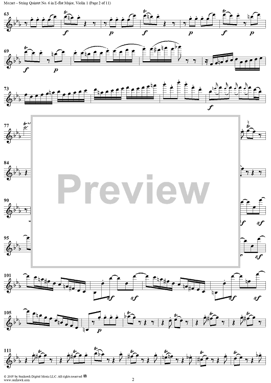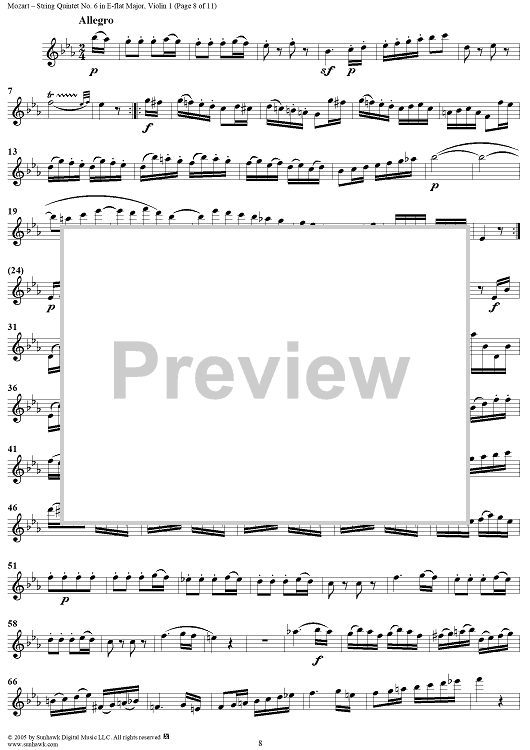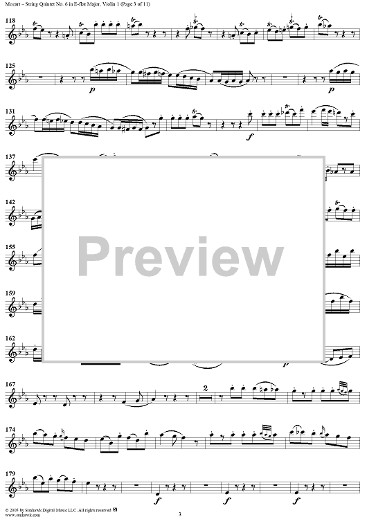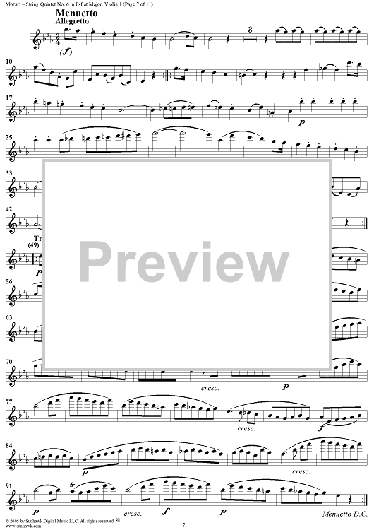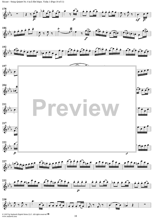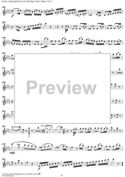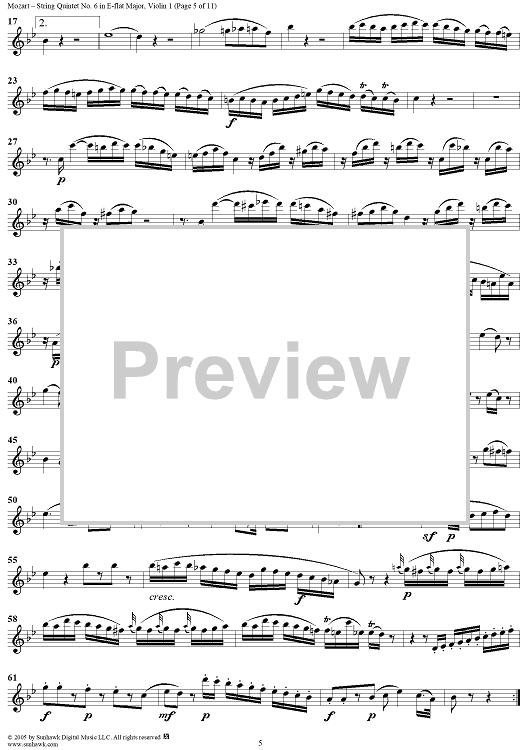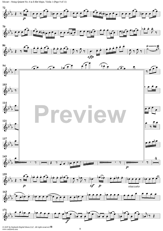 Digital Sheet Music for String Quintet No. 6 in E-flat Major, K614 - Violin 1 by Wolfgang Amadeus Mozart scored for String Quintet; id:309302