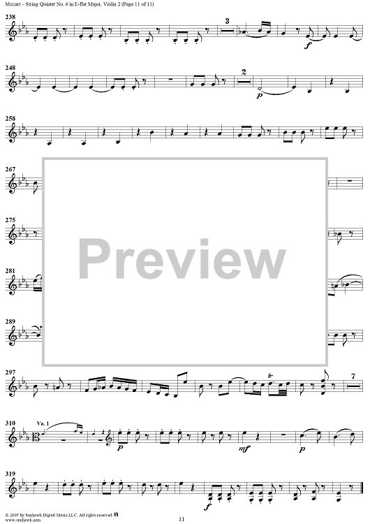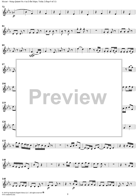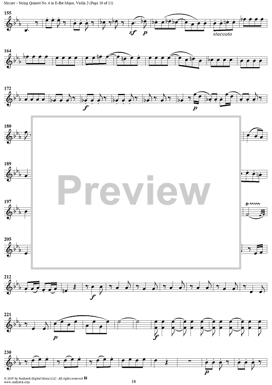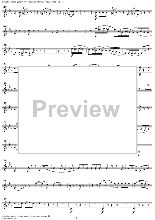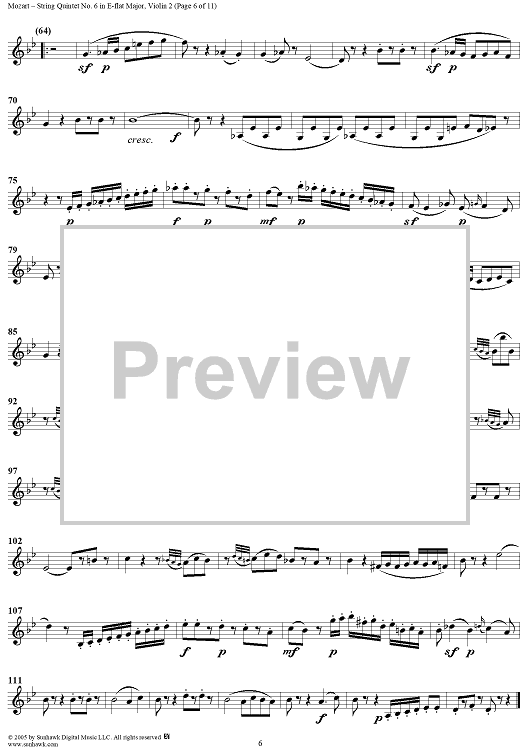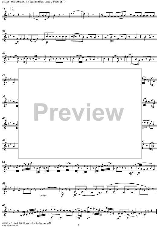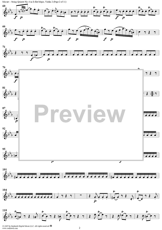 Digital Sheet Music for String Quintet No. 6 in E-flat Major, K614 - Violin 2 by Wolfgang Amadeus Mozart scored for String Quintet; id:309303