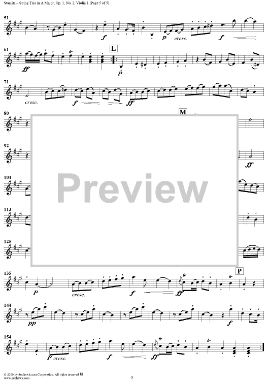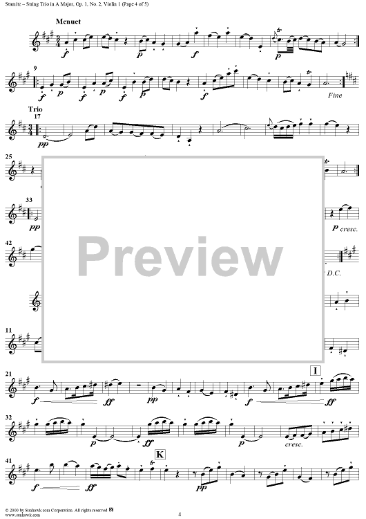 Digital Sheet Music for String Trio in A Major, Op. 1, No. 2 - Violin 1 by Johann Stamitz scored for Two Violins/Cello; id:235190