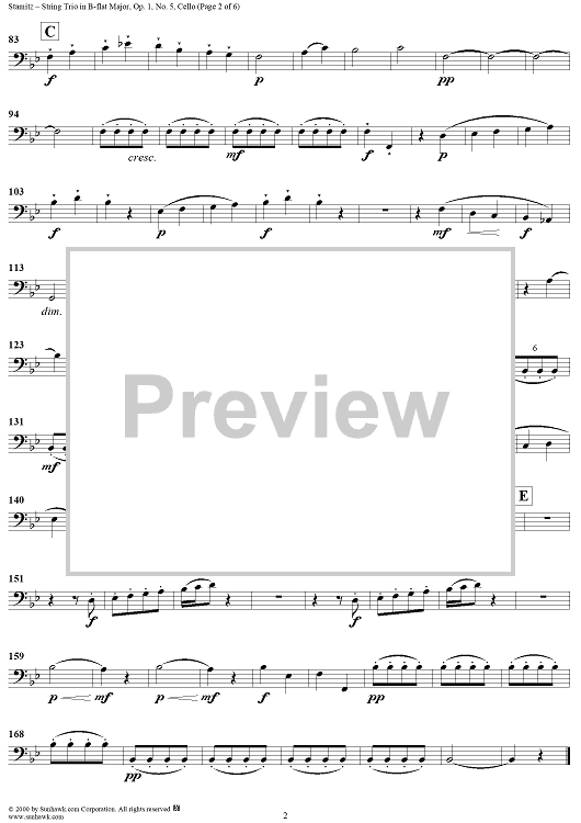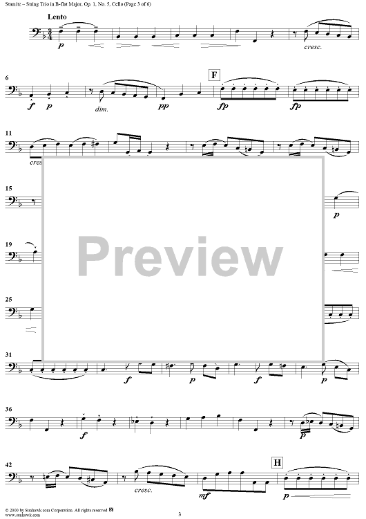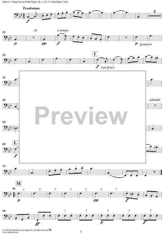 "String Trio in B-Flat Major, Op. 1, No. 5 - Cello" Sheet Music by Johann Stamitz