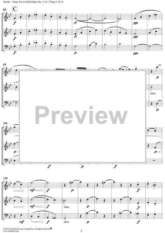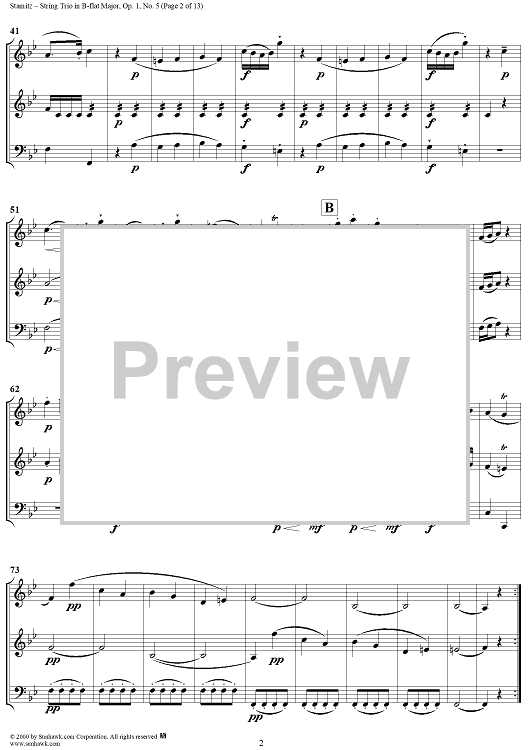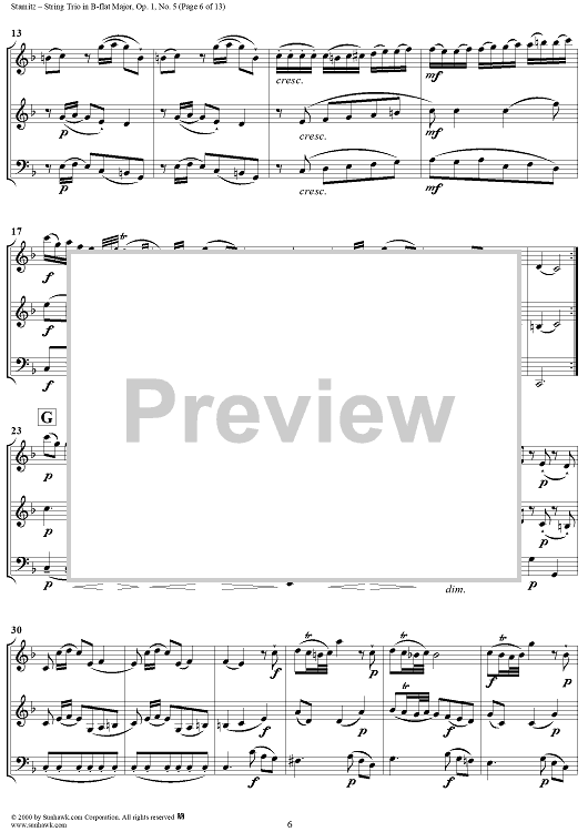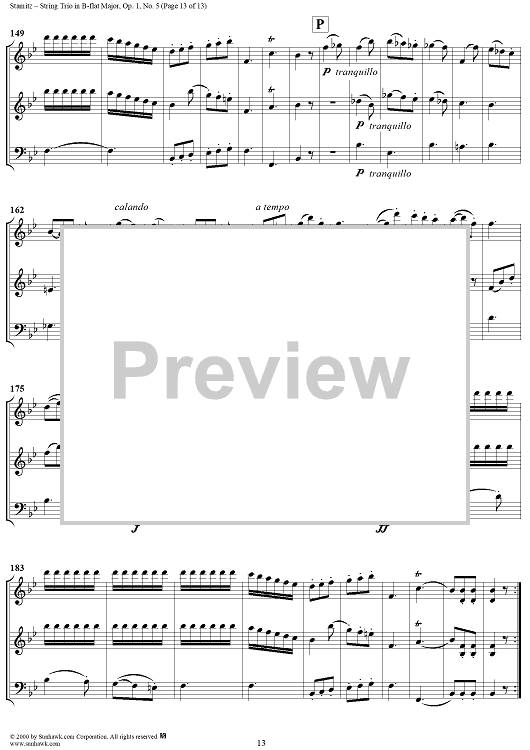 Digital Sheet Music for String Trio in B-Flat Major, Op. 1, No. 5 - Score by Johann Stamitz scored for String Trio; id:235553